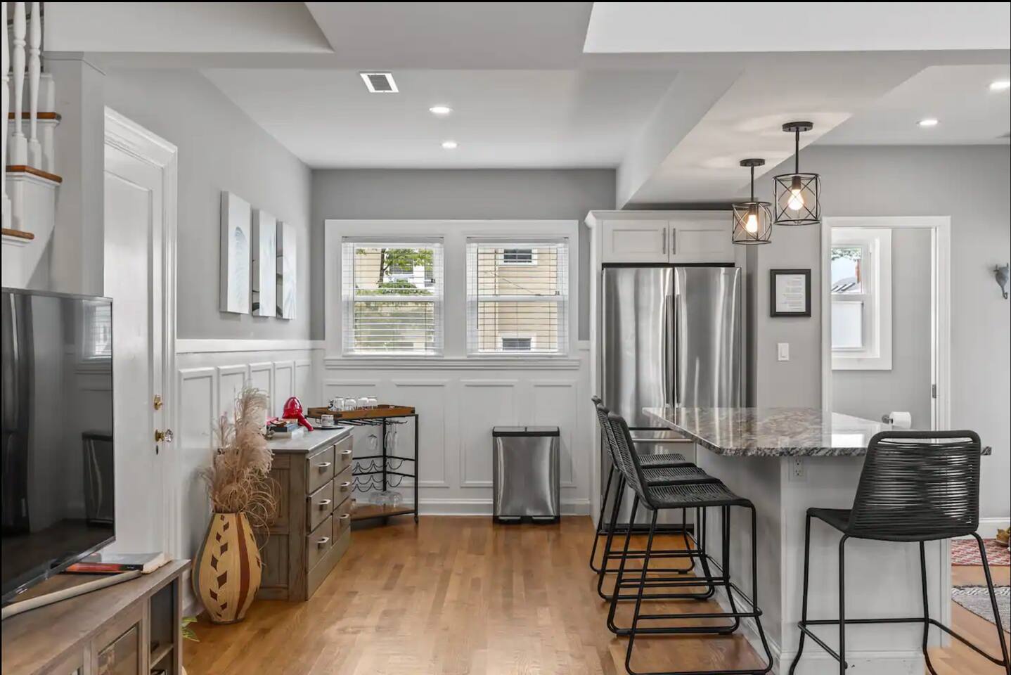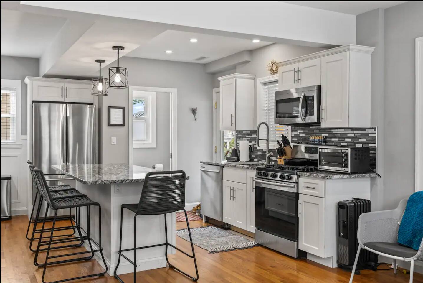 Located close to all Salem has to offer: ☆1 mile from the House of Seven Gables & the Salem Common ☆1/2 mile from the bustling Salem Downtown area ☆Less than 1 mile from nearby beaches ☆1 mile from Train Station to Boston and all other north shore destinations ☆☆FIRST FLOOR☆☆ Pull up to this cozy townhome and park in your private off-street parking space. Step inside and you’re greeted by an open living room space, complete with a large Smart TV and seating for the whole family. The closet is stocked with an air mattress in bedding to accommodate for sleeping an extra guest or 2 on this level. Make your way into the full kitchen, complete with all the amenities and appliances you need for a home cooked meal. Enjoy eating cooking up a meal and serving it at the bar. On this level you’ll also find a convenient half bathroom. ☆☆SECOND FLOOR☆☆ Make your way up to the second level where you will find two spacious bedrooms, both with queen sized beds. A full bathroom and the laundry area can also be found on this level. The first queen bedroom has a dedicated workspace, and a large closet and dresser for storage. The second bedroom also has a closet and a dresser, along with a large Smart TV and a sitting area. ☆☆THIRD FLOOR☆☆ The third floor is home to the master bedroom suite with a king size bed and its own full bathroom. Unwind in front of the Smart TV while you stream your favorites. ☆☆OUTDOOR SPACE☆☆ In the shared backyard you will find a charcoal grill and an outdoor dining table- a great spot for a meal after a day exploring Salem. The yard is fenced in with a grassy area perfect for the kiddos. Whether visiting for the famous witch trials, Salem's vibrant cultural scene, or a New England getaway, this space serves as an ideal home base. ☆☆Book today and let us take care of you at the Serene Salem Escape!☆☆