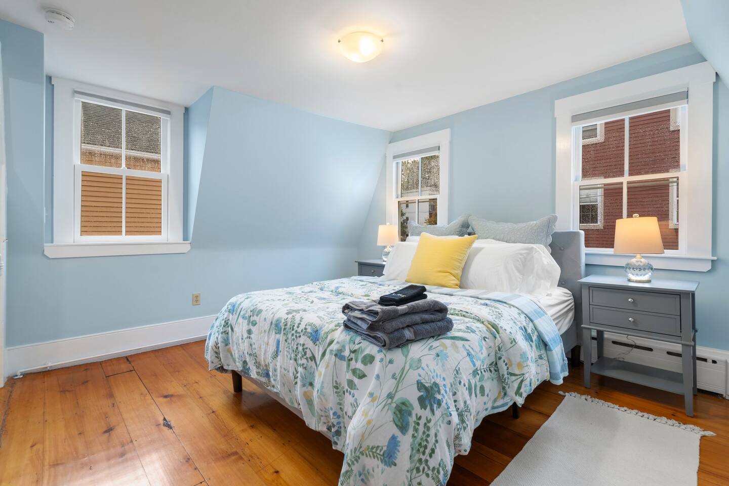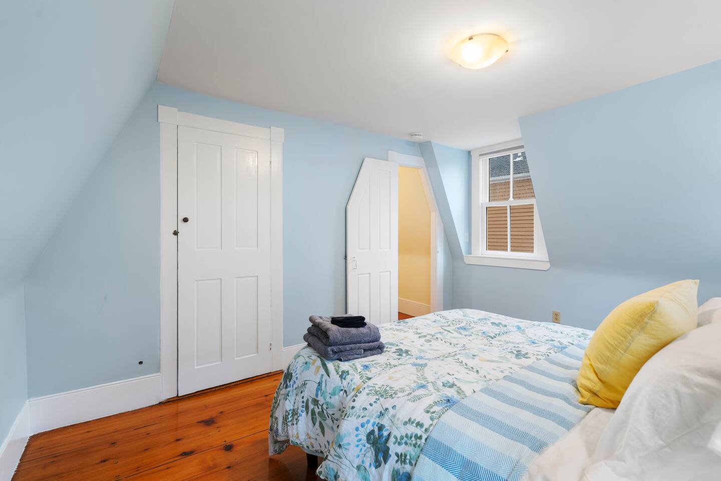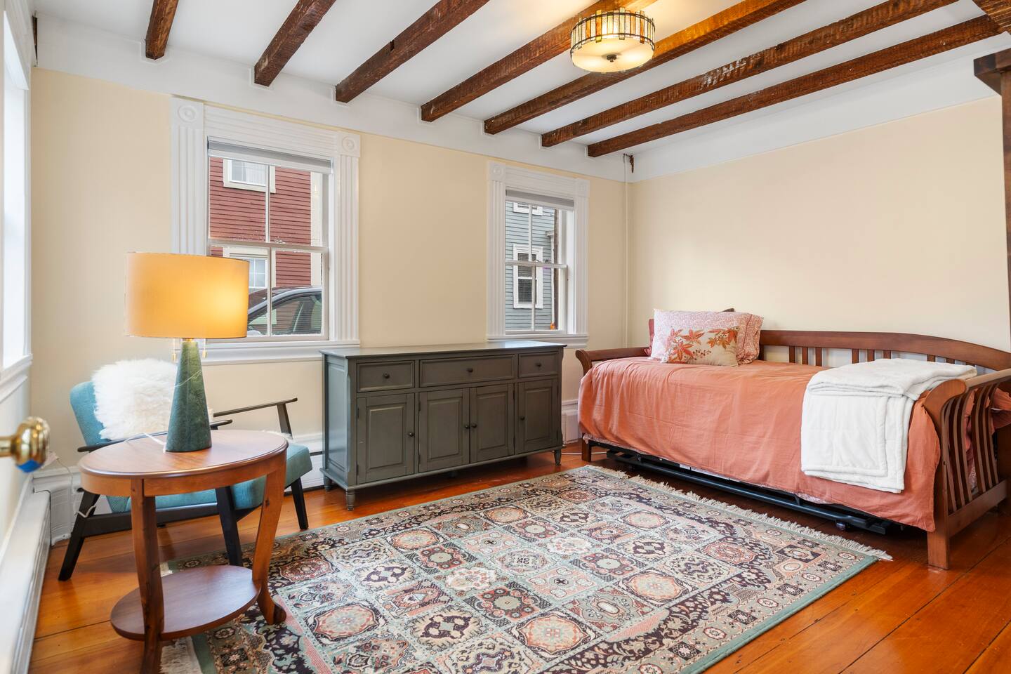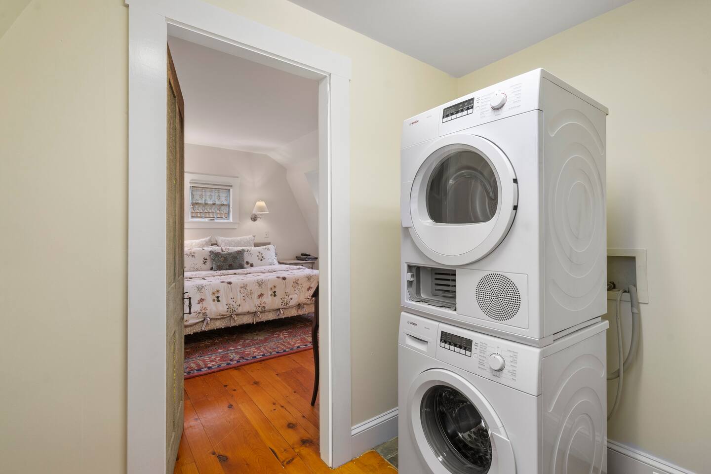 Experience Salem at The Eliza Gray House & Learn More Below! ☆☆ HISTORY ☆☆ In a time where most women were unfortunately seen as property themselves, this unique property was owned by Eliza Gray. Erected in the early 1800's but lovingly maintained over the course of centuries, this home has all the original character with plenty of stories to tell. ☆☆ FIRST FLOOR ☆☆ As you enter the home you are greeted with gleaming, wide plank, hardwood floors and an open concept living and dining space that seamlessly spills through double glass doors into a quaint and private garden. Off the living and dining room is the updated kitchen with butcher block counter tops and over-sized breakfast bar. The full kitchen is stocked with everything you need for a home cooked meal. Rounding out the main floor is the family room with the original exposed beams and the first floor full bath with walk in shower. This bedroom features a daybed with trundle - space for two to sleep! ☆☆ SECOND FLOOR ☆☆ Head up the windy staircase to the second floor and you'll find three additional bedrooms. The first bedroom immediately at the top of the stairs features a queen bed and a large walk-in closet. In the middle of the hall you’ll find the another bedroom with a twin bed, and a desk for remote workspace. On this floor you will find a large bathroom with a shower/tub combo. The master bedroom boasts a king bed, high ceilings, and a walk in closet with convenient laundry machines. ☆☆ OUTDOOR SPACE ☆☆ Step outside and you will find a patio and a small fenced in yard area, a rare gem in the heart of Salem. There is also a bistro table for 2 for outdoor dining.