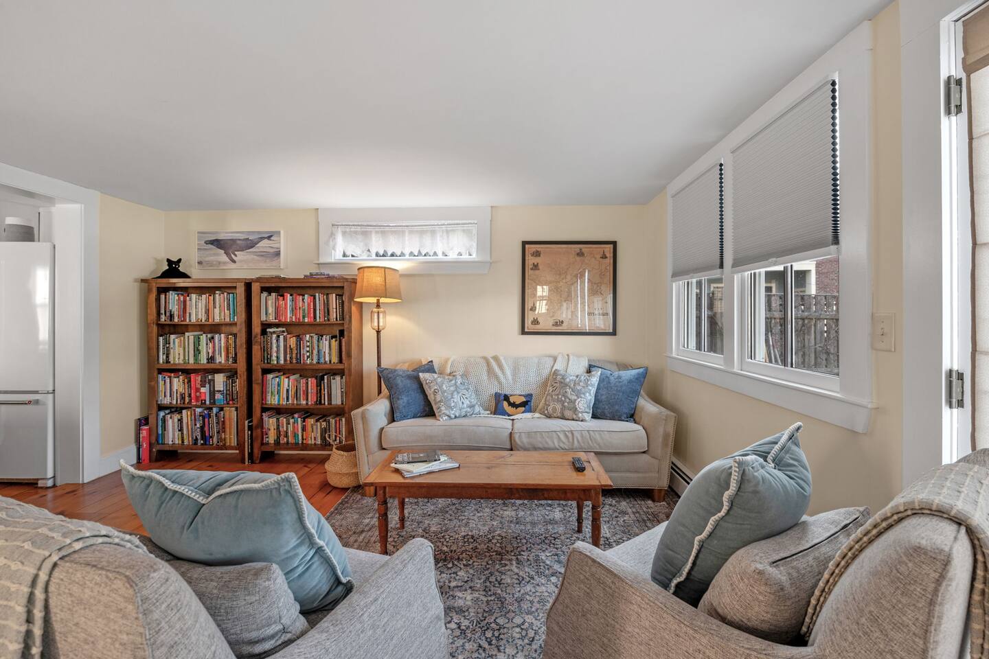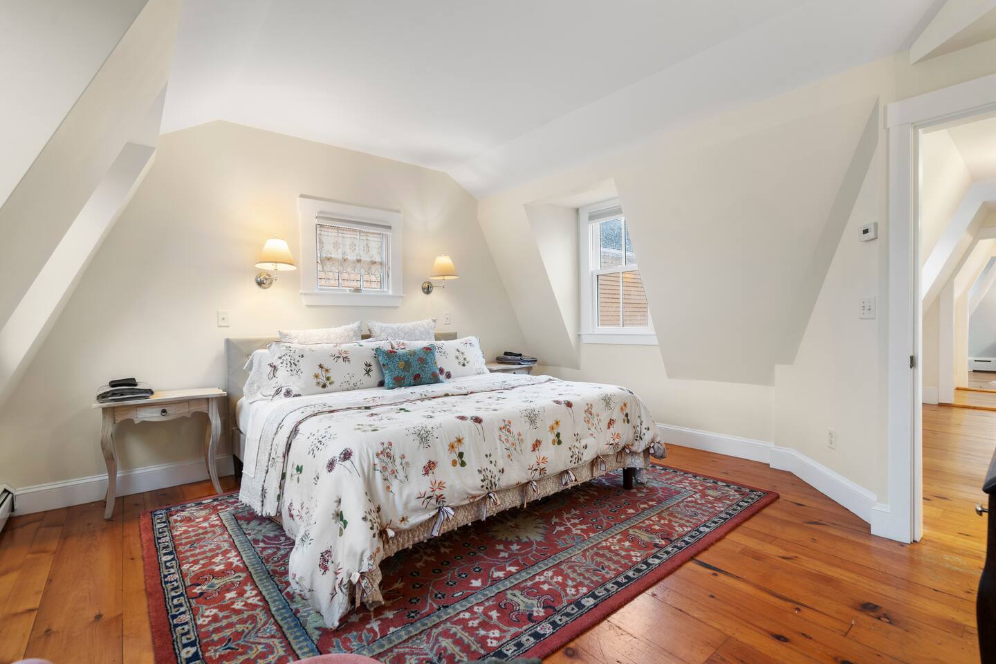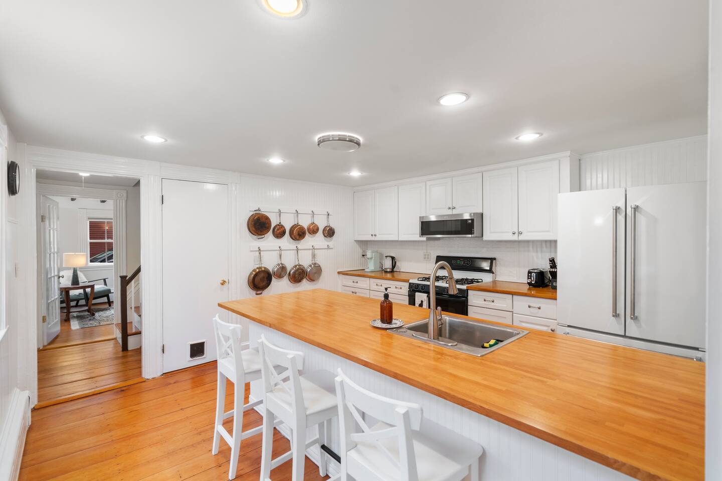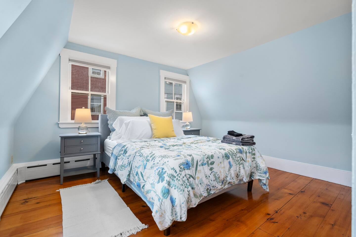 Experience Salem at The Eliza Gray House & Learn More Below! ☆☆ HISTORY ☆☆ In a time where most women were unfortunately seen as property themselves, this unique property was owned by Eliza Gray. Erected in the early 1800's but lovingly maintained over the course of centuries, this home has all the original character with plenty of stories to tell. ☆☆ FIRST FLOOR ☆☆ As you enter the home you are greeted with gleaming, wide plank, hardwood floors and an open concept living and dining space that seamlessly spills through double glass doors into a quaint and private garden. Off the living and dining room is the updated kitchen with butcher block counter tops and over-sized breakfast bar. The full kitchen is stocked with everything you need for a home cooked meal. Rounding out the main floor is the family room with the original exposed beams and the first floor full bath with walk in shower. This bedroom features a daybed with trundle - space for two to sleep! ☆☆ SECOND FLOOR ☆☆ Head up the windy staircase to the second floor and you'll find three additional bedrooms. The first bedroom immediately at the top of the stairs features a queen bed and a large walk-in closet. In the middle of the hall you’ll find the another bedroom with a twin bed, and a desk for remote workspace. On this floor you will find a large bathroom with a shower/tub combo. The master bedroom boasts a king bed, high ceilings, and a walk in closet with convenient laundry machines. ☆☆ OUTDOOR SPACE ☆☆ Step outside and you will find a patio and a small fenced in yard area, a rare gem in the heart of Salem. There is also a bistro table for 2 for outdoor dining.