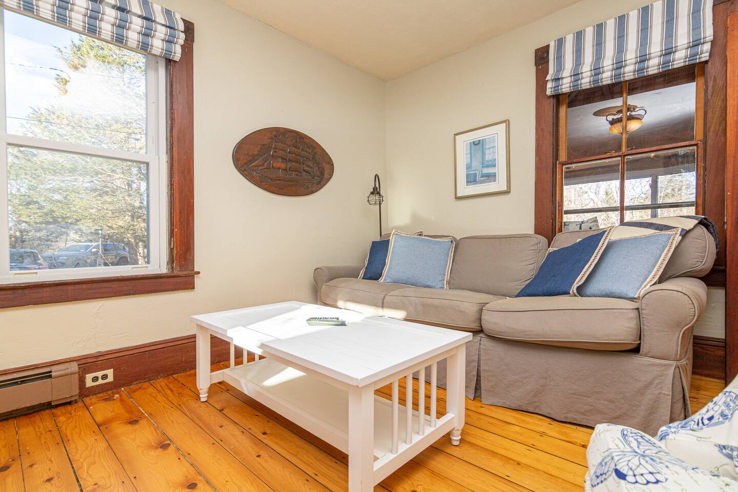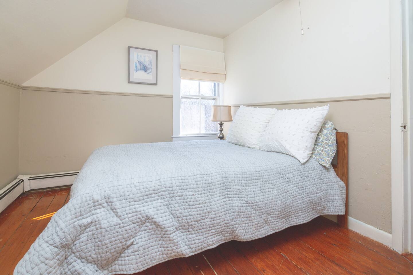 This cozy antique cottage with historic charm is in a quiet tucked away neighborhood of Gloucester - the perfect spot for a retreat. This residence offers 2 floors, with a full kitchen, living room space, three season porch, 2 bedrooms, 1.5 bathrooms, and an amazing outdoor space with a private sauna. You do not want to miss this home! -Walking distance from nearby hiking trails, Lighthouse Beach, and the quaint village of Annisquam -10 minute drive to Downtown Gloucester ☆☆ FIRST FLOOR ☆☆ Walk into this cute cottage through the three season porch, where you will find the dining area, complete with seating for 6. Once you enter the home, you are welcomed by a full kitchen, complete with all the essentials you could need for a home cooked meal. There is also a kitchen table perfect for a quick bite. Off of this kitchen you will find a convenient half bathroom, and the living room, which has a sofa bed for any additional guests. Beyond the living room, there is another 3 season porch which has an extra twin bed. ☆☆ SECOND FLOOR ☆☆ Climb the stairs to the second floor, where you will find the two main bedrooms, one with a queen bed and one with a full bed. In the queen bedroom, you can also find a desk, perfect for any remote work you may need to get done during your getaway. These bedrooms have closets and dressers for clothing storage. The last room on this floor is the full bathroom with a tub. ☆☆ OUTDOOR SPACE ☆☆ You do not want to miss the outdoor space at this property! The beautiful fenced backyard is complete with a brand new patio and a BBQ grill. You can also find an outdoor shower, perfect for cooling down after a long beach day. To top it all off, there is a private sauna in this backyard as well! ★☆ Book Today & Let Us Take Care Of You at The Hutchins Hideaway! ☆★