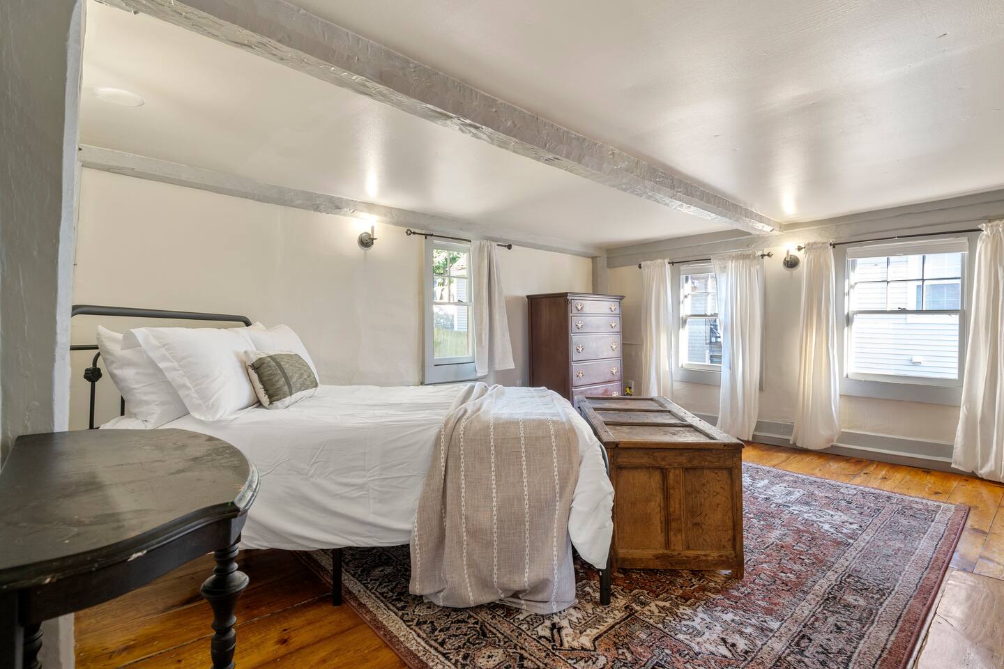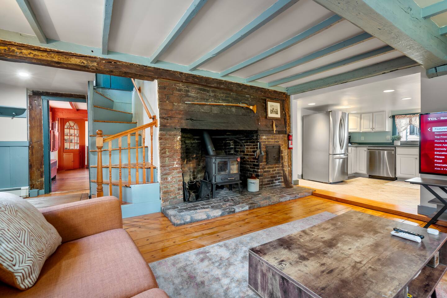 This well-maintained 1686 historic home is conveniently close to the commuter rail to Boston, local beaches, and downtown Beverly. With 3 spacious floors including 5 bedrooms, and 3 full bathrooms you will have all the space you need. Enjoy a large backyard, fire-pit for gathering, and ample off street parking making it perfect for any occasion! 2 minute drive to Beverly downtown & beaches! 10 minute drive to Historic Salem ☆☆ FIRST FLOOR ☆☆ Step into a piece of history with this beautifully preserved 1686 home, where timeless elegance meets contemporary convenience. The inviting first floor features a cozy living room, equipped with a Smart TV and plenty of games perfect for relaxing evenings.The large dining room seats 8 making it ideal for everyone to gather for meals. While you’ll be steps away from plenty of dining options on Cabot Street, the updated kitchen is the perfect place to prepare meals at home. Enjoy new appliances and all the essentials you’ll need for a home cooked meal. You’ll also find a full bathroom with shower/tub and a private office on this floor making it the perfect remote workspace. ☆☆ SECOND FLOOR ☆☆ Make your way up the winding stairs to discover three generously sized bedrooms, designed to accommodate up to five guests. Two spacious bedrooms are at the top of the stairs, one with a queen and one with a full bed. Each has ample space to get ready and unpack with closets and dressers. The third, smaller bedroom offers a cozy twin day bed. This floor also features a full shower/tub bathroom and sitting area stocked with additional games, puzzles, and desk for an additional workspace! ☆☆ THIRD FLOOR ☆☆ Continuing up to the third floor you’ll find two additional bedrooms: a large king bedroom and a cozy twin bedroom. The newly renovated full bathroom on this floor keeps the character of the house in mind with a luxurious clawfoot tub and shower available. This floor also has another comfortable sitting area, where you can curl up with a good book. ☆☆ OUTSIDE SPACE ☆☆ The backyard is a rare gem in downtown Beverly! Plenty of space for all to enjoy this shady oasis after a day at the beach or gather around the fire pit on a crisp New England night. All this just steps away from all the shopping and dining selections of Beverly! ★☆ Book Today & Let Us Take Care Of You at The Hazadiah Smith House! ☆★