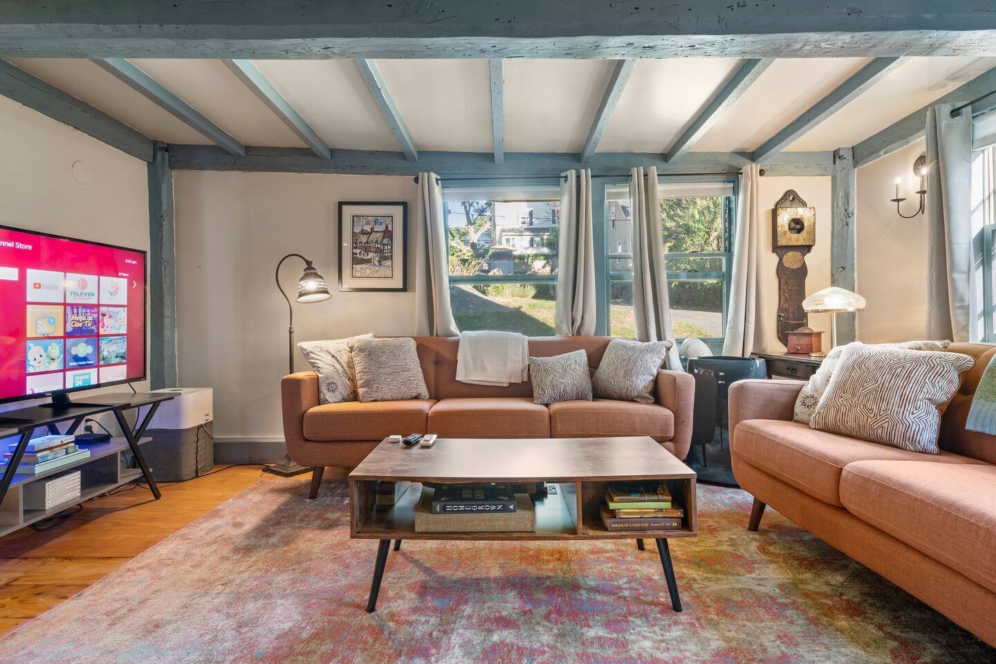 ☀️Sleeps 8 in 5 bedrooms ☀️Plenty of flexible sleeping arrangements with a king, a full, a queen + 2 twin bedrooms ☀️3 full bathrooms - 1 on each level ☀️Stocked with games and books, beach blankets and toys ☀️Large dining room with plenty of historical character ☀️Private office for "workcation" ☀️Patio w/ firepit ☀️Hi-Speed WiFi & Smart TV ☀️Modern kitchen with new appliances stocked with all the essentials Experience The Hazadiah Smith House With Us & Learn More Below!