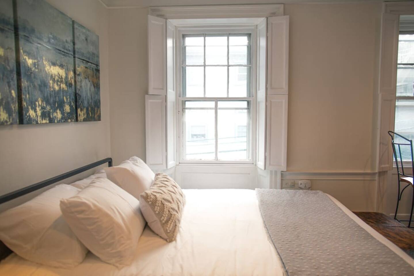 Welcome to the beautifully renovated 1742 Captain Ben Andrew's home with charming character. Located on the second floor of this historic building, this apartment is the perfect spot for your next getaway. With a full kitchen, living room with a smart TV, full bathroom, and a queen bed, this space is super cozy and unique. -Steps from all the shops and restaurants Old Town Marblehead has to offer -10 minute drive from historic Salem ☆☆ SECOND FLOOR UNIT☆☆ Step inside this unit and be greeted by ample natural lighting from the large windows! To the right you will find table seating for 2 by the window, a great spot for your next meal. To the left is the kitchen, which houses all the essentials that you will need such as an oven with a stove top, microwave, fridge with a freezer, and a toaster, along with lots of dinnerware and kitchen utensils. There is a queen size bed in this apartment, and next to the bed, a couch which turns into a double futon for additional sleeping space! This space has lots of historic character, but has been remodeled with modern touches. There is a full bathroom beyond the kitchen, with lots of counter space and a stand up shower stall. ★☆ Book Today & Let Us Take Care Of You at Captain Andrew's Home! ☆★