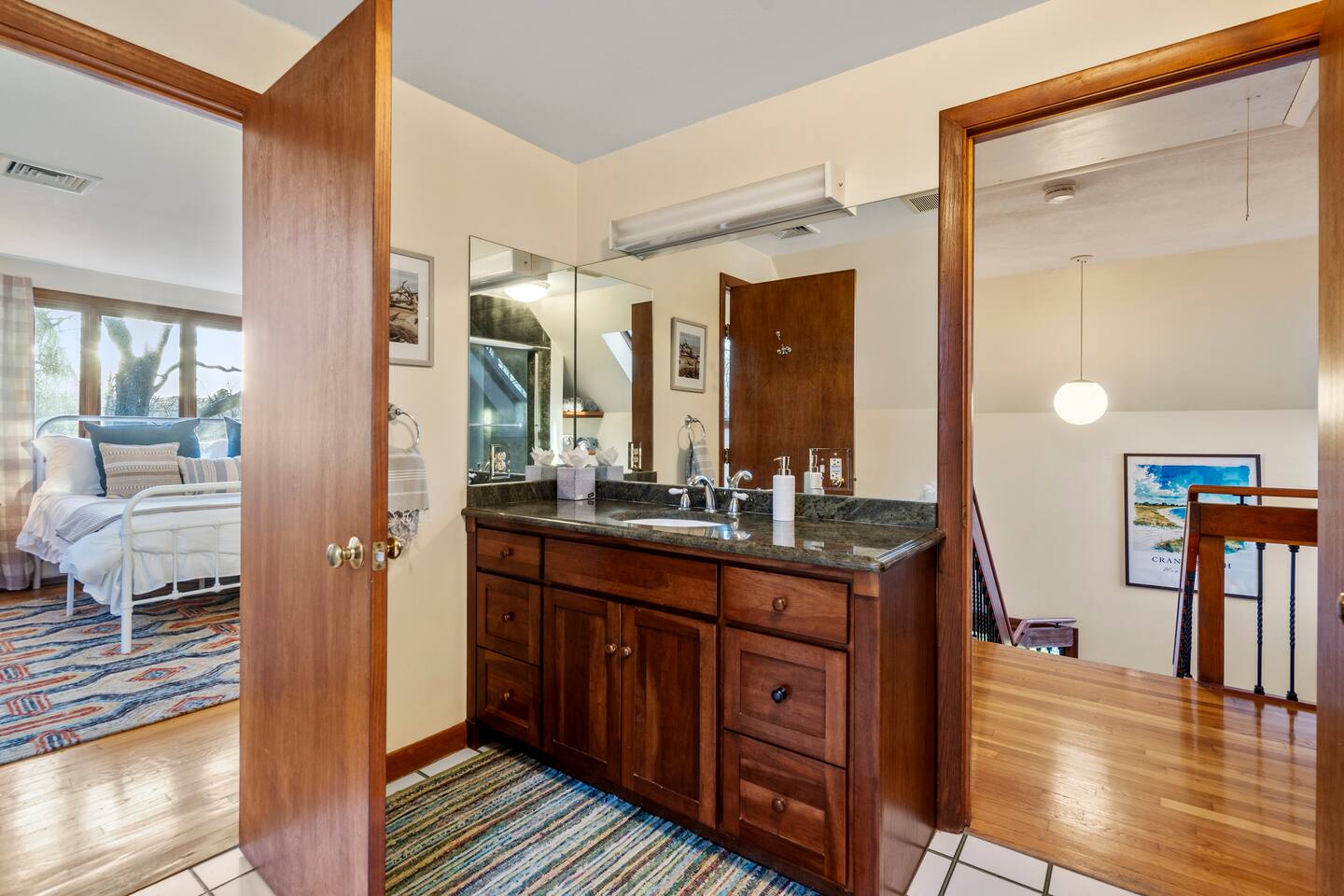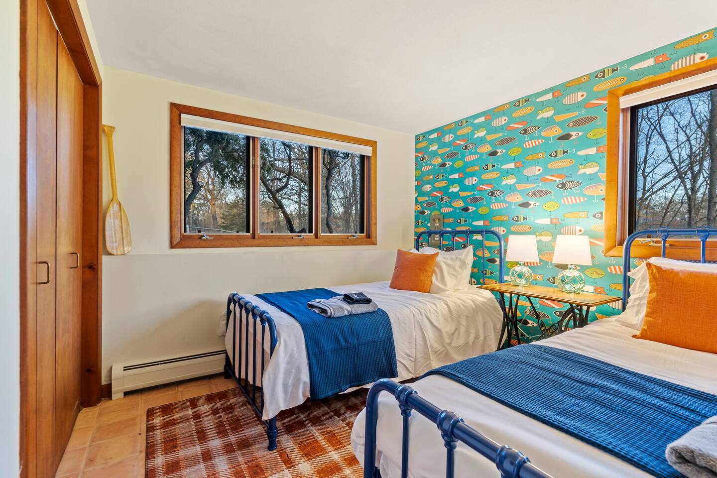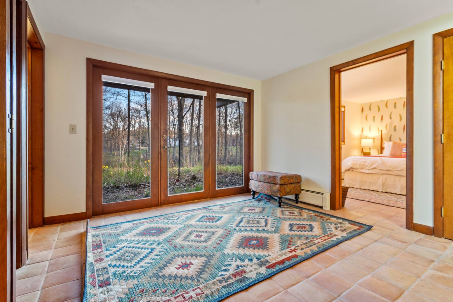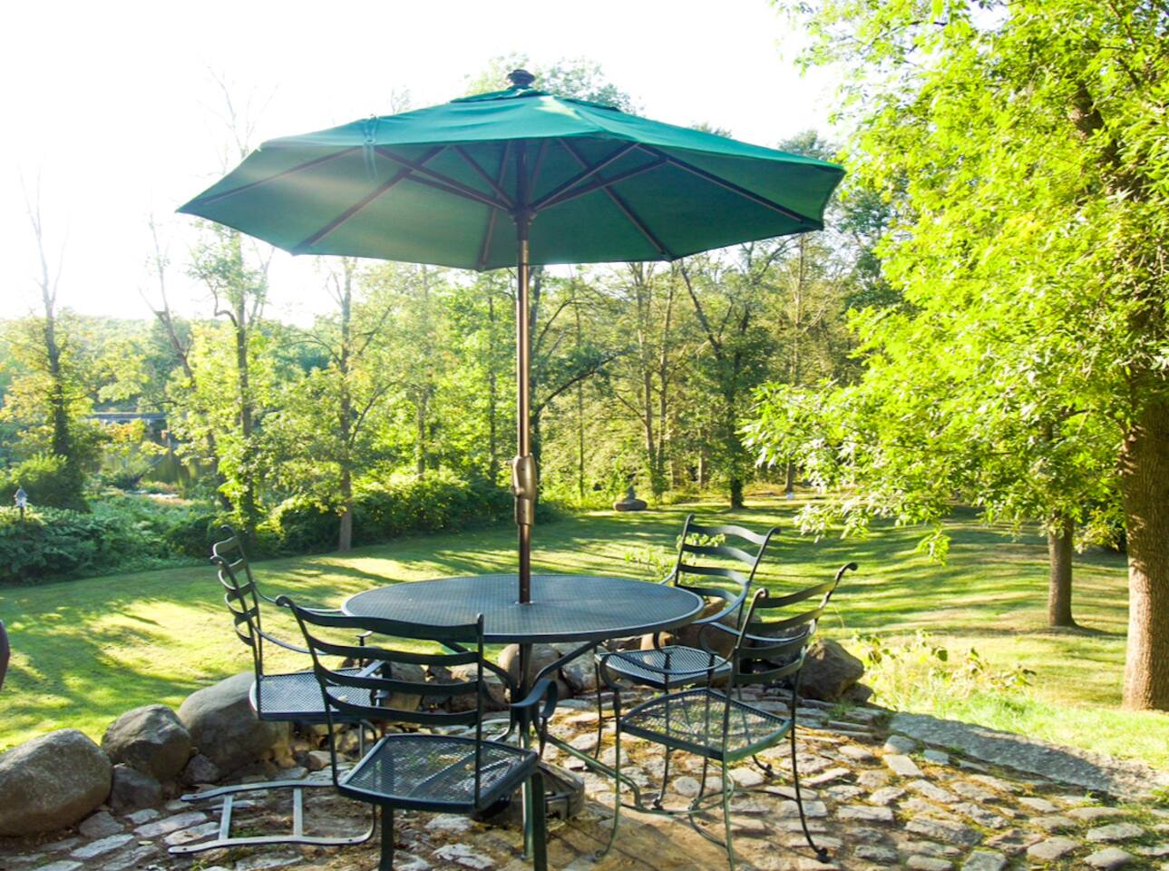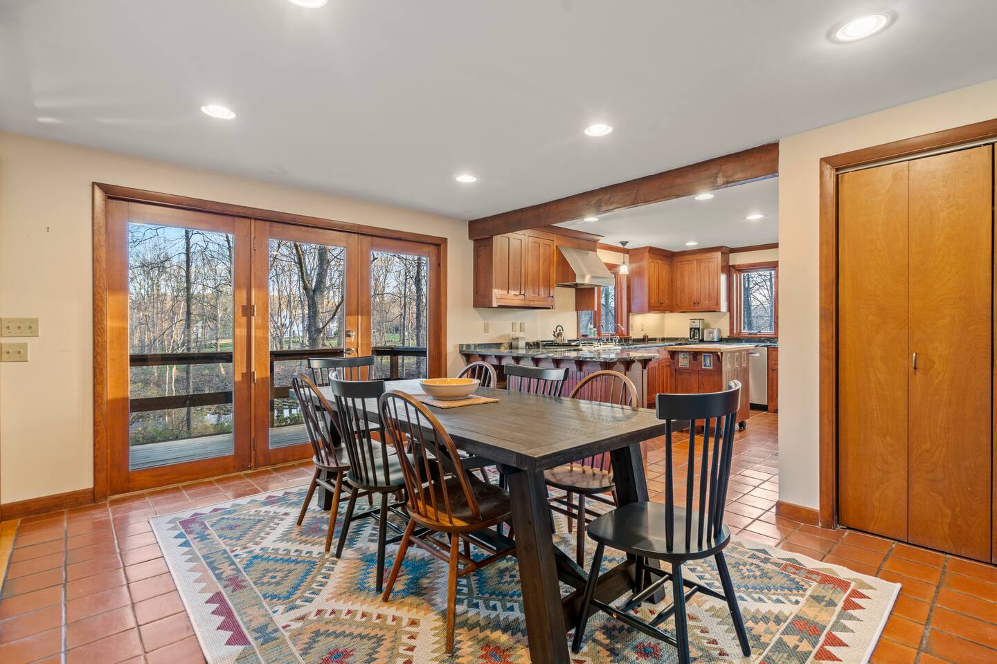 KEY FEATURES: ☀ Private riverfront access with 2 kayaks and 2 canoes included! ☀ Large great room with heated floors ☀ Sleeps 10; 5 bedrooms, 2 king, 2 queen + 2 twins ☀ Stocked with family friendly amenities - pack and play + booster seat ☀ 2 dining areas and 2 living rooms ☀ 2.5 Bathrooms ☀ Modern and well-equipped kitchen with plenty of seating options ☀ 12 acres of private land overlooking the Ipswich River ☀ Patio with grill and plenty of outdoor seating ☀ Hi-Speed WiFi and Smart TV ☀ Barn stocked with beach gear including chairs, boogie boards, and life vests ☀ Bring your horses - we have 3 horse paddocks and 3 stable barn ready for them! ☀ Quick drive to downtown Ipswich and Crane Beach ☀Right along the Essex County trail network, allowing direct access to miles of horse, foot or bike trails! ☆☆ BARN + OUTSIDE SPACE ☆☆ Pull into the long driveway and you will be amazed at the amount of land this estate sits on! It's an equestrian's dream - bring your horses and your hay and we include 3 private horse paddocks and a 3 stable barn. You won't need to go far to take a walk in nature - beautiful trails cut right through the property. The barn is stocked with beach gear including chairs and boogie boards. Head down to your private riverfront and you'll find 2 kayaks and canoes included in your stay! A stone patio outside the house has outdoor seating and a new gas grill perfect for enjoying meals al fresco while taking in the calming sights and sounds of the Ipswich River. ☆☆ MAIN FLOOR ☆☆ Enter the split level house and you'll immediately understand why this is the perfect lodge for group retreats. The main floor has a large great room with plenty of seating and opens up to the dining area so there is space for all to gather. There is no shortage or windows to overlook your natural surroundings. The kitchen is fully equipped with all the appliances, utensils and cookware you need to feel at home. The group's cooks will enjoy stainless appliances, stone counters, and a gas stovetop. This thoughtfully-designed home provides an additional dining area right off the kitchen with seating for 8. The final gathering space on this floor is the "den" complete with grand piano, decorative fireplace and a 55" TV with Roku entertainment system, allowing full access to your favorite streaming services. This room has so many options for use as it has doors for privacy. Shut the doors and use the desk setup as a remote workspace. Send the kids in here for a movie night while the adults use the Great Room space. Use the board games provided and make this the game room. The possibilities are endless! ☆☆ UPSTAIRS ☆☆ Head up the stairs and you'll find a large master bedroom with King Bed and 2 walk in closets. There is an ensuite bathroom here (with bidet!) that can also be accessed by the hallway so that the second upstairs bedroom can use this floor's full bathroom. The second bedroom on this level is fitted with a queen-size bed and is the perfect place to unwind with skylights and natural decor. ☆☆ DOWNSTAIRS ☆☆ Head downstairs or come in through the "mudroom" a common space with tiled floor perfect for entering after a day adventuring in the river. A full bathroom with walk in shower is on this level making it easy to clean up after the time outdoors. There are three additional bedrooms on this level each thoughtfully designed with their own fun personality. There is a bedroom of 2 twin beds, a King bedroom and a Queen bedroom giving so many options to sleep for families and groups alike! We have family friendly amenities in where you'll also find provided pack and play and booster sleep so babies/toddlers can comfortably be accommodated without packing all the extra gear. All this only minutes away from charming downtown Ipswich and beautiful Crane Beach! ★☆ Book Today & Let Us Take Care Of You at the Ipswich River Lodge! ☆★
