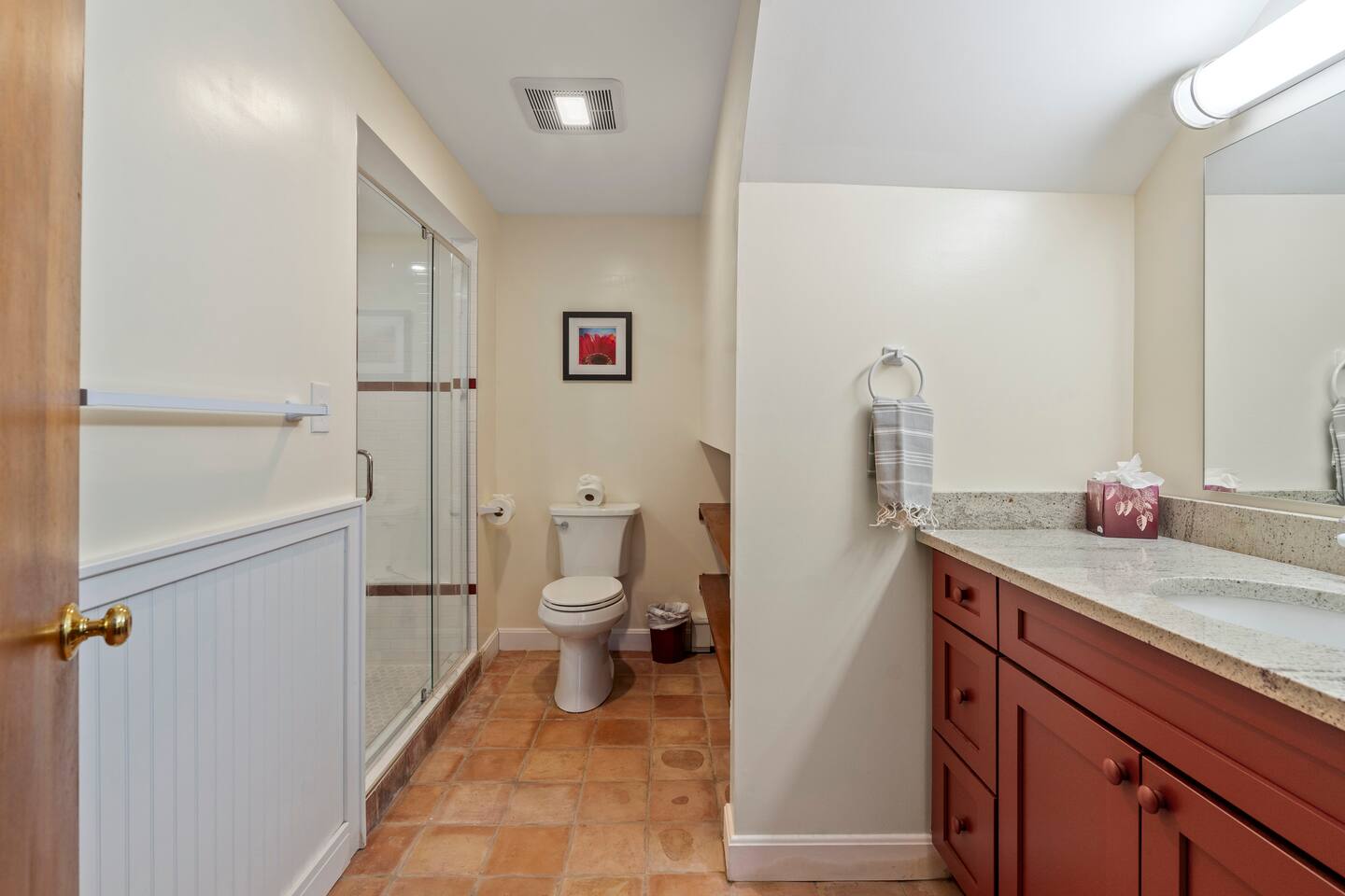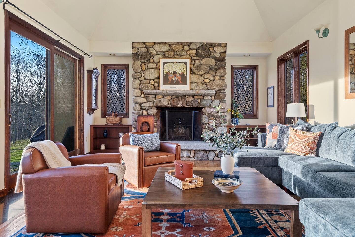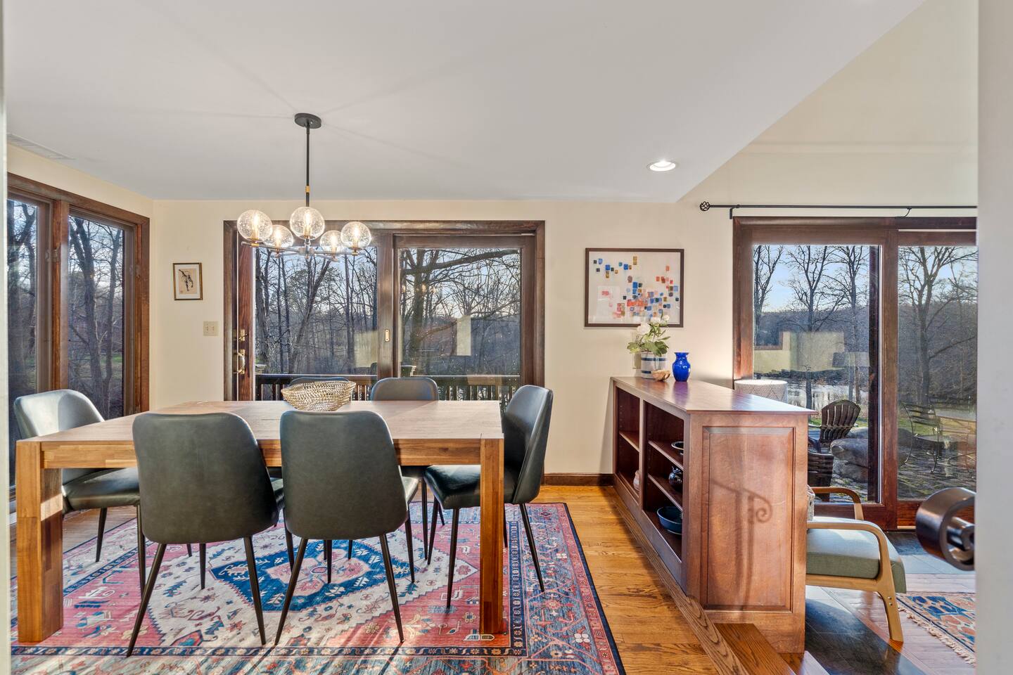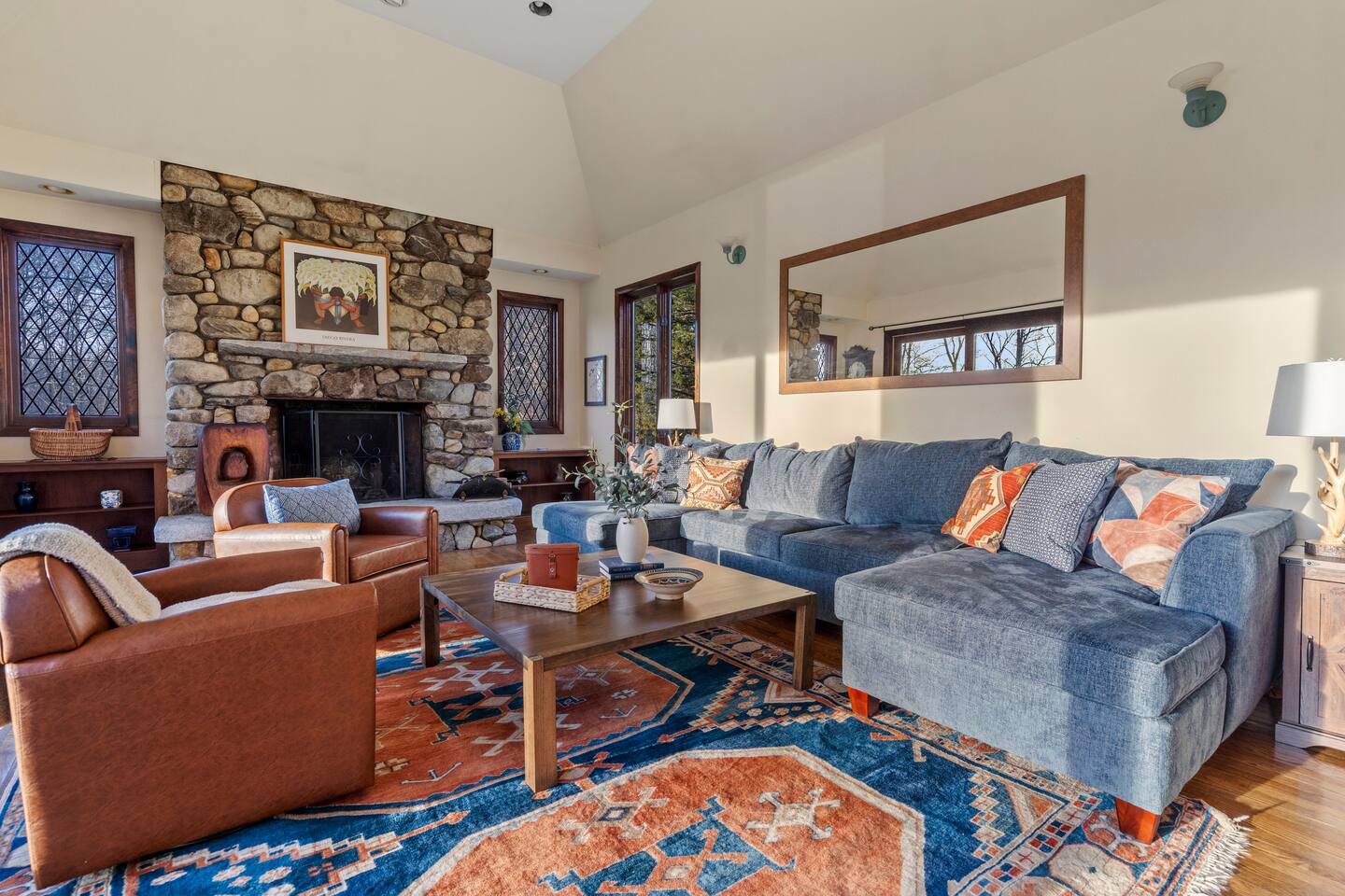 KEY FEATURES: ☀ Private riverfront access with 2 kayaks and 2 canoes included! ☀ Large great room with heated floors ☀ Sleeps 10; 5 bedrooms, 2 king, 2 queen + 2 twins ☀ Stocked with family friendly amenities - pack and play + booster seat ☀ 2 dining areas and 2 living rooms ☀ 2.5 Bathrooms ☀ Modern and well-equipped kitchen with plenty of seating options ☀ 12 acres of private land overlooking the Ipswich River ☀ Patio with grill and plenty of outdoor seating ☀ Hi-Speed WiFi and Smart TV ☀ Barn stocked with beach gear including chairs, boogie boards, and life vests ☀ Bring your horses - we have 3 horse paddocks and 3 stable barn ready for them! ☀ Quick drive to downtown Ipswich and Crane Beach ☀Right along the Essex County trail network, allowing direct access to miles of horse, foot or bike trails! ☆☆ BARN + OUTSIDE SPACE ☆☆ Pull into the long driveway and you will be amazed at the amount of land this estate sits on! It's an equestrian's dream - bring your horses and your hay and we include 3 private horse paddocks and a 3 stable barn. You won't need to go far to take a walk in nature - beautiful trails cut right through the property. The barn is stocked with beach gear including chairs and boogie boards. Head down to your private riverfront and you'll find 2 kayaks and canoes included in your stay! A stone patio outside the house has outdoor seating and a new gas grill perfect for enjoying meals al fresco while taking in the calming sights and sounds of the Ipswich River. ☆☆ MAIN FLOOR ☆☆ Enter the split level house and you'll immediately understand why this is the perfect lodge for group retreats. The main floor has a large great room with plenty of seating and opens up to the dining area so there is space for all to gather. There is no shortage or windows to overlook your natural surroundings. The kitchen is fully equipped with all the appliances, utensils and cookware you need to feel at home. The group's cooks will enjoy stainless appliances, stone counters, and a gas stovetop. This thoughtfully-designed home provides an additional dining area right off the kitchen with seating for 8. The final gathering space on this floor is the "den" complete with grand piano, decorative fireplace and a 55" TV with Roku entertainment system, allowing full access to your favorite streaming services. This room has so many options for use as it has doors for privacy. Shut the doors and use the desk setup as a remote workspace. Send the kids in here for a movie night while the adults use the Great Room space. Use the board games provided and make this the game room. The possibilities are endless! ☆☆ UPSTAIRS ☆☆ Head up the stairs and you'll find a large master bedroom with King Bed and 2 walk in closets. There is an ensuite bathroom here (with bidet!) that can also be accessed by the hallway so that the second upstairs bedroom can use this floor's full bathroom. The second bedroom on this level is fitted with a queen-size bed and is the perfect place to unwind with skylights and natural decor. ☆☆ DOWNSTAIRS ☆☆ Head downstairs or come in through the "mudroom" a common space with tiled floor perfect for entering after a day adventuring in the river. A full bathroom with walk in shower is on this level making it easy to clean up after the time outdoors. There are three additional bedrooms on this level each thoughtfully designed with their own fun personality. There is a bedroom of 2 twin beds, a King bedroom and a Queen bedroom giving so many options to sleep for families and groups alike! We have family friendly amenities in where you'll also find provided pack and play and booster sleep so babies/toddlers can comfortably be accommodated without packing all the extra gear. All this only minutes away from charming downtown Ipswich and beautiful Crane Beach! ★☆ Book Today & Let Us Take Care Of You at the Ipswich River Lodge! ☆★