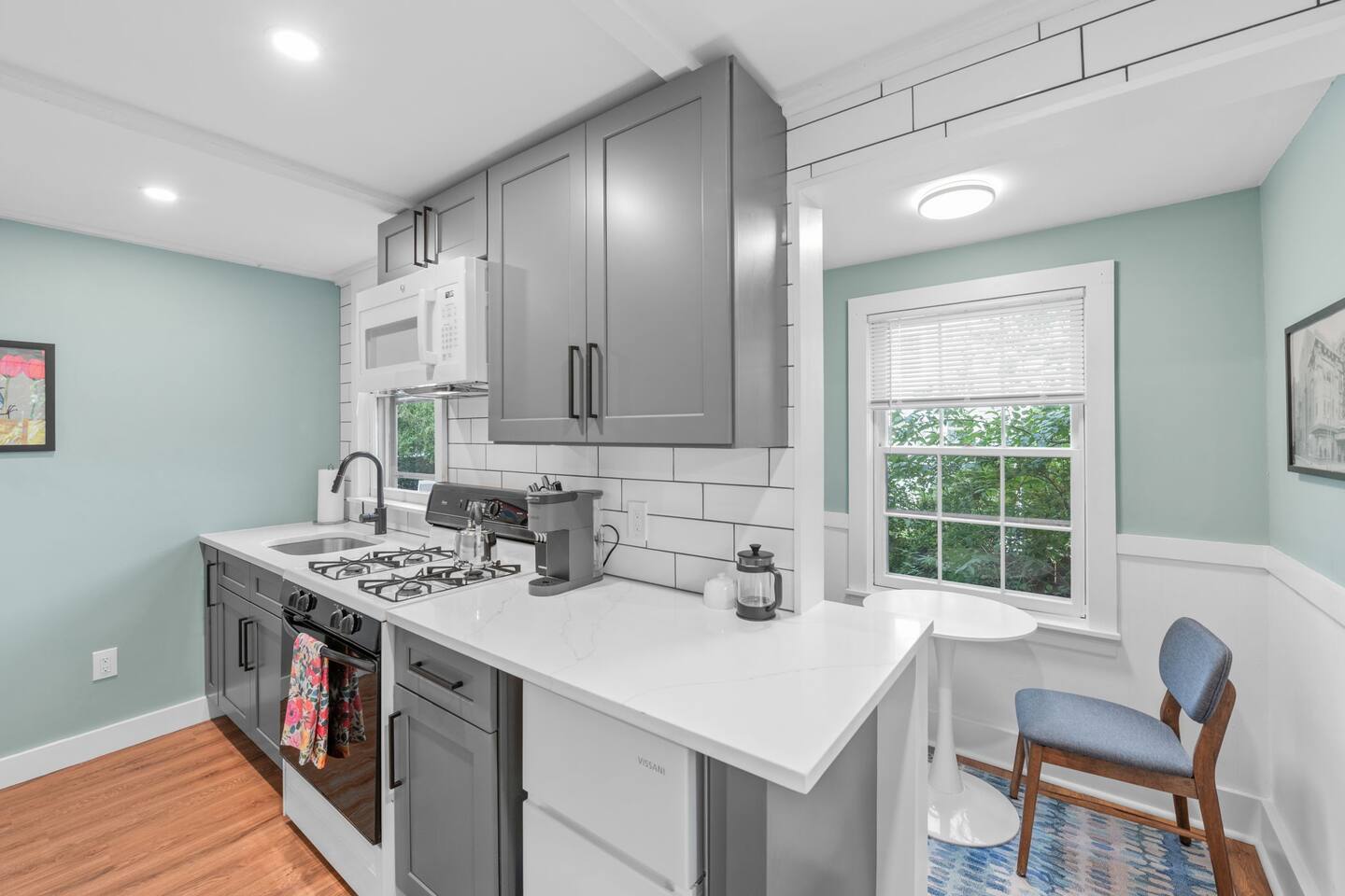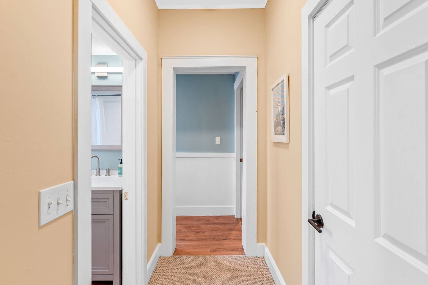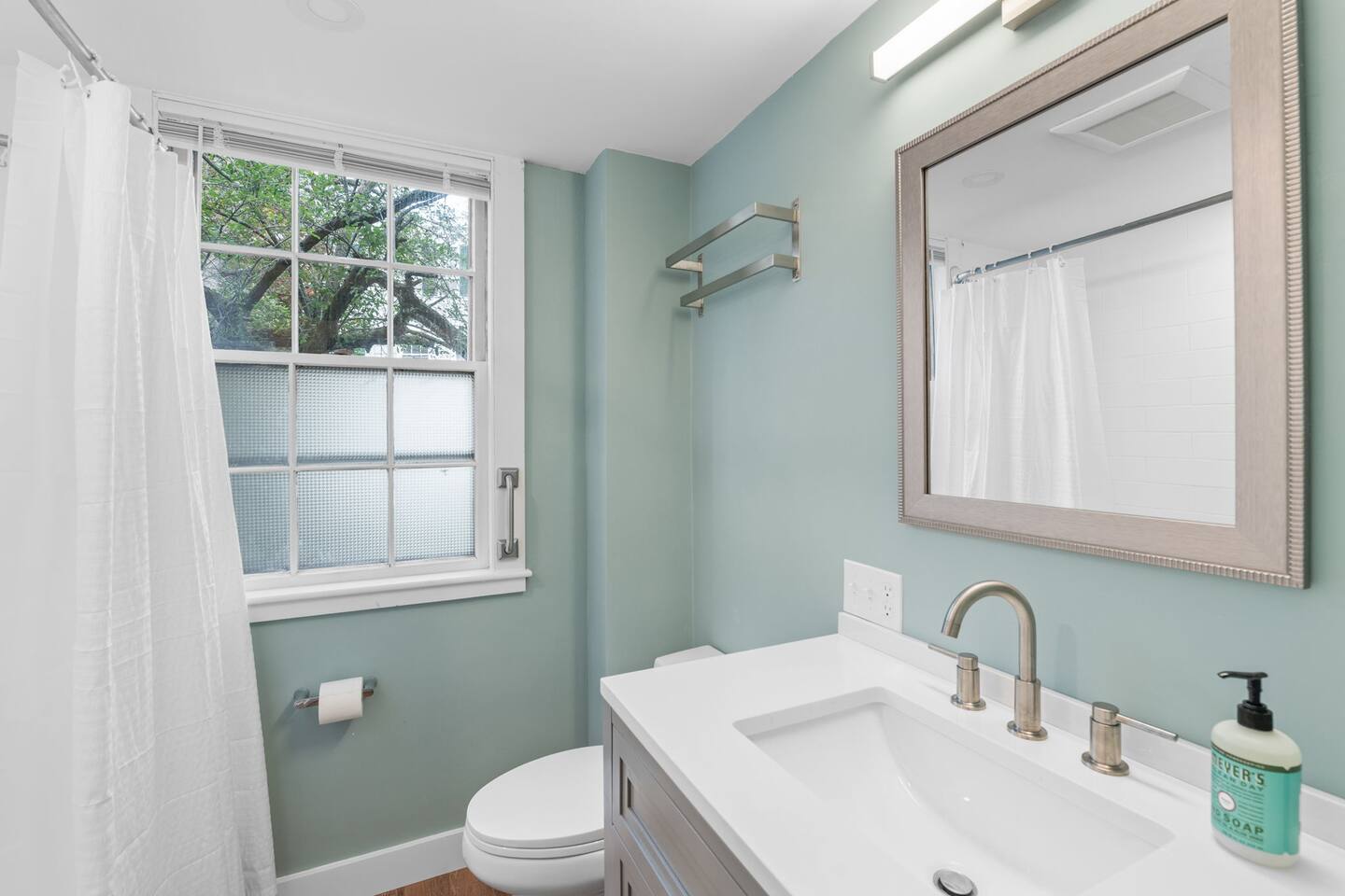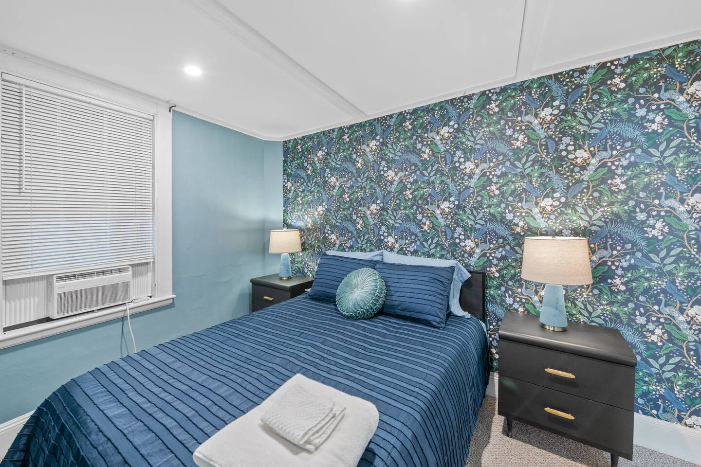Welcome to the beautifully renovated 1803 Jabez Smith House, built for Captain James Silver. This historic spot in the heart of downtown Salem makes this the perfect place for your first or next spooky getaway. With a kitchen, living room with a smart TV, queen bed, and remote workspace this space has everything you'll need. ☆☆ LIVING ROOM ☆☆ Find convenient parking on the quiet side street and you'll see the charming historic green building on the corner. At your private entrance you'll see a cozy outdoor seating set. Once inside you'll find a relaxing living space with authentic character like original wood floors and a decorative fireplace. Enjoy kicking back after a day of exploring in front of the smart TV where you can log in and stream your favorites. You'll also find a desk in here perfect for setting up a remote workspace! ☆☆ KITCHEN ☆☆ Step into the newly renovated galley kitchen and you'll find all you need to whip up a meal during your stay. Choose from convenient keurig or a slow morning french press at the cozy dining nook. ☆☆ BEDROOM + BATHROOM ☆☆ The bedroom is a vibrant room with a fun wallpapered backdrop. A comfortable queen bed and plenty of space to unpack in the closet make this a place you'll feel right at home. The fully renovated bathroom has a shower and tub combo and plenty of light to get ready for a night out on the town. We've got you covered with all the essentials down to shower products, iron, and hair dryer! ★☆ Book Today & Let Us Take Care Of You at The Jabez Smith House! ☆★