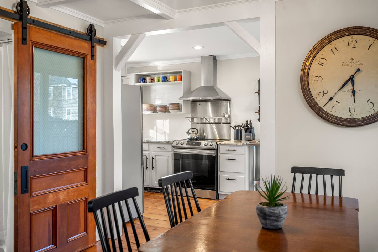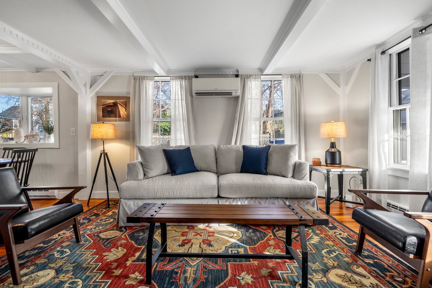 KEY FEATURES: ☀ Sleeps 5; 2 bedrooms, 1 queen,+ 2 twin ☀ Comfortable queen sized pull out sofa on the first floor ☀ Newly Renovated Full Bathroom on first floor ☀ Cozy and well-equipped kitchen ☀ Backyard and deck with new charcoal grill and outdoor seating ☀ AC for hot summer days! ☀ Exterior camera present ☀ Hi-Speed WiFi and Roku Smart TV ☀ Open floor plan perfect for entertaining with dining area for 6 guests ☀ Walk to Downtown Rockport - shops, restaraunts, and beaches just steps away