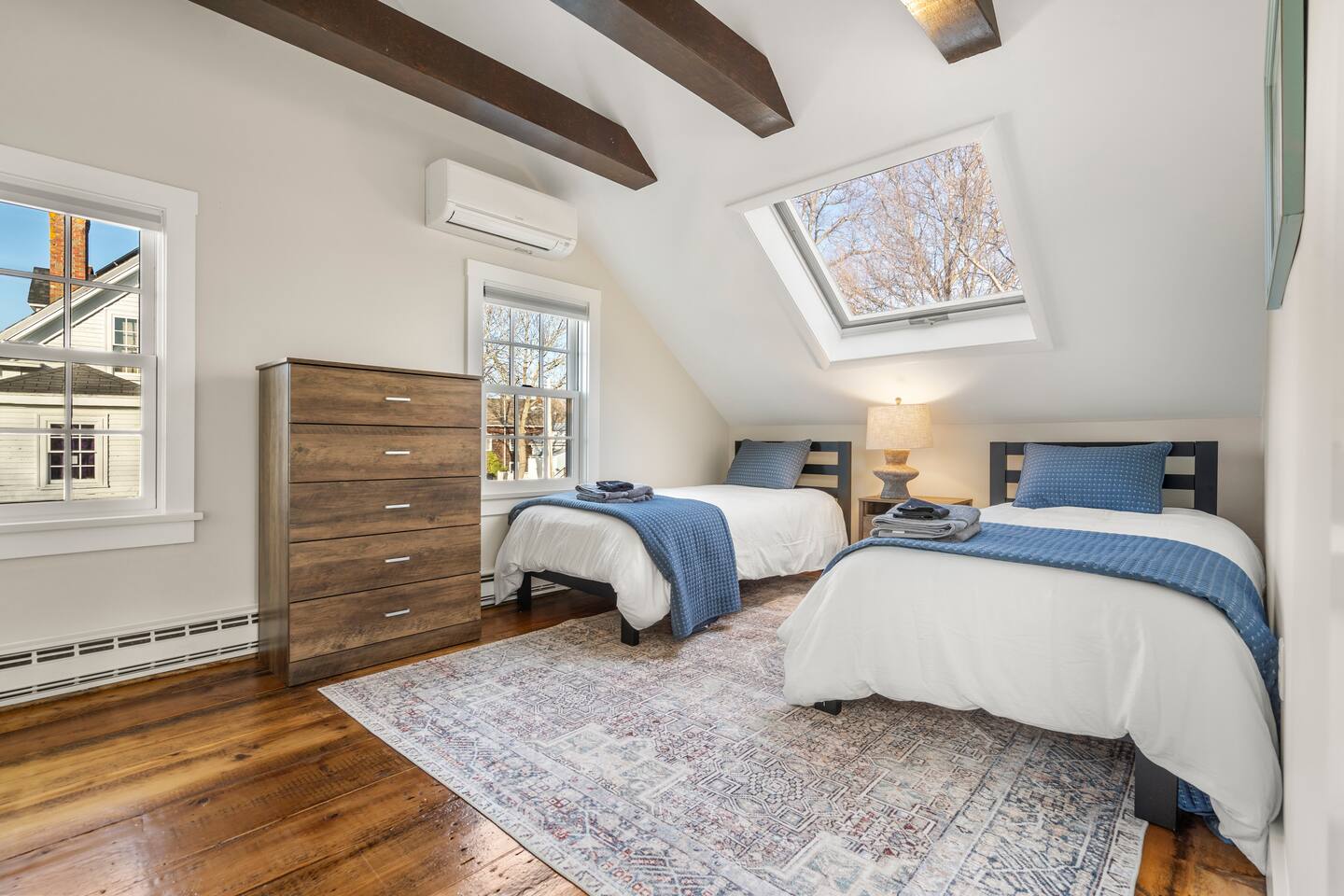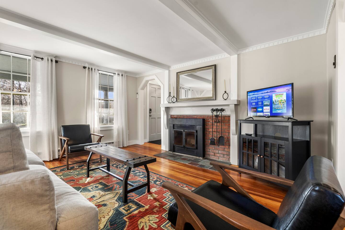 This charming cottage is newly renovated with plenty of original character and fun details. Tucked away on a quiet lane you are a short stroll to both Front and Back Beach, Shalin Liu center, Bearskin neck and all that downtown Rockport has to offer. End your day at the beach grilling a homemade meal out on your private yard and deck! 5 Min Walk to Front Beach + Rockport's Main Street 30 Min Drive to Salem Experience Rockport, the most scenic seaside village, With Us & Learn More Below! ☆☆ FIRST FLOOR ☆☆ The first floor of the home is an open concept space with living room, dining area, and kitchen all connected. The cozy kitchen is fully equipped with all the appliances, utensils and cookware you need to feel at home. There's room for 6 at the dining table if you choose to take your meals inside! On this main floor you'll also find the full bathroom with oversized shower and beautiful tiled floor. There's even a convenient washer and dryer tucked in there perfect for drying off wet suits after a day at the beach! The living room has a decorative fireplace and is kitted with a Roku TV, allowing full access to your favorite streaming services. The sofa pulls outs to a comfortable queen bed making this a more accessible sleeping area for those who can't climb to the second floor. ☆☆ SECOND FLOOR ☆☆ Climb up the stairs and you'll find two generous sized bedrooms to accommodate 4 guests. These beautiful spaces are full of charm with restored original flooring and vaulted ceilings with skylights and exposed beams. The primary bedroom is fitted with a queen-size bed and the second bedroom is fitted with 2 twin beds. Both rooms have plenty of space to unpack in the large closets and dresser. ☆☆ OUTSIDE SPACE ☆☆ The backyard is a rare gem in downtown Rockport! Enjoy eating meals al fresco on the deck with the charcoal grill. Plenty of space for all to hang up your beach towels and enjoy this shady oasis after a day at the beach. All this just steps away from all the sights and attractions of Rockport! ★☆ Book Today & Let Us Take Care Of You at the Mill Pond Cottage! ☆★