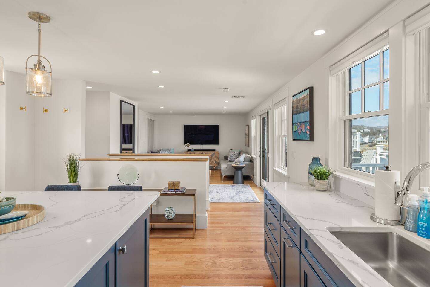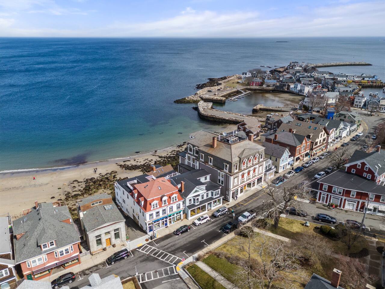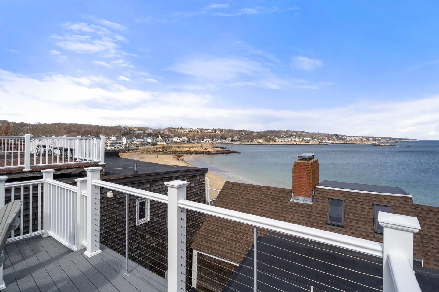 Absolutely stunning "Penthouse" unit - in the heart of downtown Rockport. Take in this quintessential New England town in luxury and style. You'll have a large exclusive deck overlooking the ocean. Inside you'll enjoy conveniences like central AC, Hi-Speed Wifi and a 65" HDTV with cable and streaming. Next to Shalin Liu Theater 10 Min Drive to downtown Gloucester Experience this luxury Penthouse escape With Us & Learn More Below! ☆☆ KITCHEN & LIVING ROOM ☆☆ Step up to your luxury penthouse and you'll be overwhelmed by the sweeping views of Sandy Bay. Enjoy a dreamy spacious kitchen with quartz countertops, a gigantic center island, upscale appliances, and views from the windows over the kitchen sink! The bright and airy kitchen is fully equipped with all the appliances, utensils and cookware you need to feel at home. The open space living area has sliders leading out to your private oceanfront deck. The living room has two sleeper sofas to accommodate an additional 2 guests and is kitted with a 65" HDTV with cable TV and access to log into your favorite streaming services. ☆☆ BEDROOM ☆☆ The bedroom is another light and bright space with spacious California King bed. Plenty of space to unpack in the closet or dresser. Lookout on downtown rockport from your peaceful perch. ☆☆ BATHROOM ☆☆ The new modern bathroom includes radiant heat and a large tiled shower. Worry about nothing on your Rockport Vacation as this thoughtfully stocked bathroom provides everything you need and more. Right outside the bathroom is a laundry closet with convenient washer and dryer so you can pack light and stay as long as you'd like! ☆☆ Deck ☆☆ You're guaranteed to spend most of your time taking in the breathtaking views out on your private deck. Head down the deck steps and the beach is to your left and all that downtown Rockport has to offer on your right! ★☆ Book Today & Let Us Take Care Of You at The Rockport Penthouse! ☆★