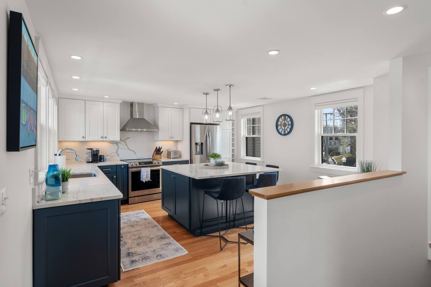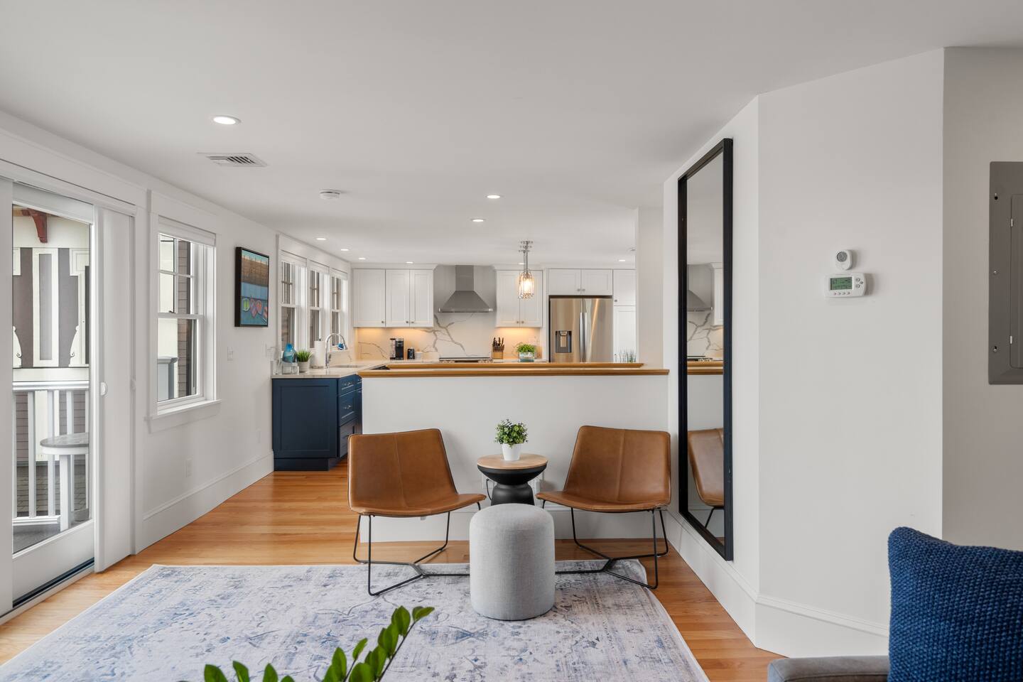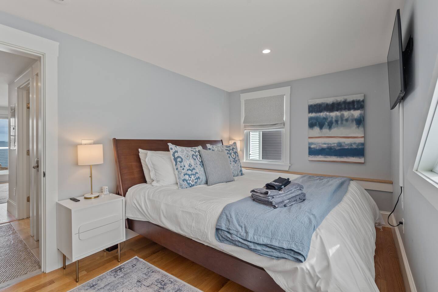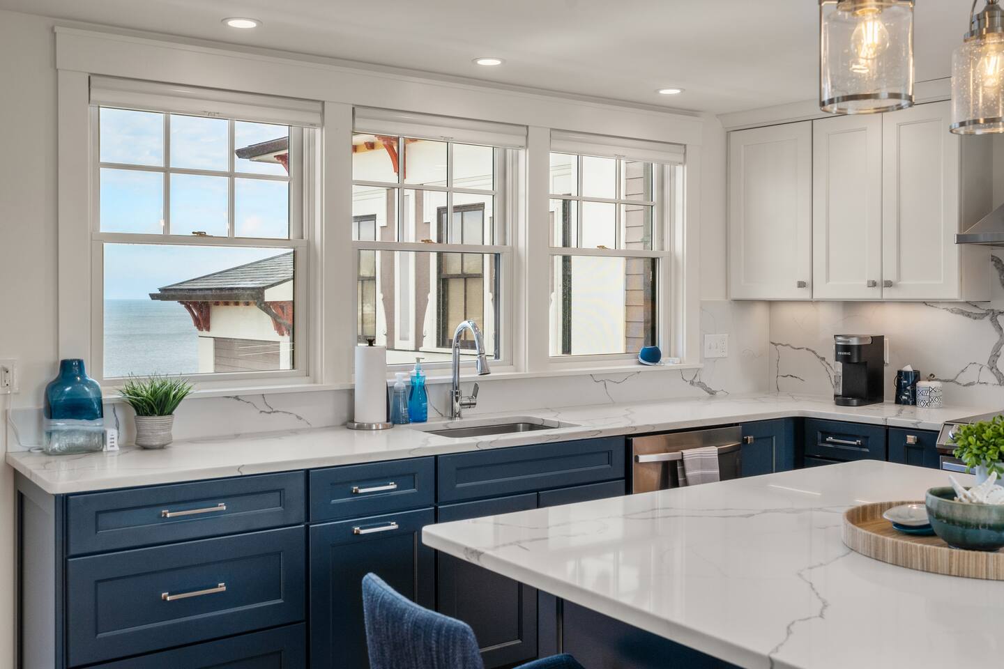Absolutely stunning "Penthouse" unit - in the heart of downtown Rockport. Take in this quintessential New England town in luxury and style. You'll have a large exclusive deck overlooking the ocean. Inside you'll enjoy conveniences like central AC, Hi-Speed Wifi and a 65" HDTV with cable and streaming. Next to Shalin Liu Theater 10 Min Drive to downtown Gloucester Experience this luxury Penthouse escape With Us & Learn More Below! ☆☆ KITCHEN & LIVING ROOM ☆☆ Step up to your luxury penthouse and you'll be overwhelmed by the sweeping views of Sandy Bay. Enjoy a dreamy spacious kitchen with quartz countertops, a gigantic center island, upscale appliances, and views from the windows over the kitchen sink! The bright and airy kitchen is fully equipped with all the appliances, utensils and cookware you need to feel at home. The open space living area has sliders leading out to your private oceanfront deck. The living room has two sleeper sofas to accommodate an additional 2 guests and is kitted with a 65" HDTV with cable TV and access to log into your favorite streaming services. ☆☆ BEDROOM ☆☆ The bedroom is another light and bright space with spacious California King bed. Plenty of space to unpack in the closet or dresser. Lookout on downtown rockport from your peaceful perch. ☆☆ BATHROOM ☆☆ The new modern bathroom includes radiant heat and a large tiled shower. Worry about nothing on your Rockport Vacation as this thoughtfully stocked bathroom provides everything you need and more. Right outside the bathroom is a laundry closet with convenient washer and dryer so you can pack light and stay as long as you'd like! ☆☆ Deck ☆☆ You're guaranteed to spend most of your time taking in the breathtaking views out on your private deck. Head down the deck steps and the beach is to your left and all that downtown Rockport has to offer on your right! ★☆ Book Today & Let Us Take Care Of You at The Rockport Penthouse! ☆★