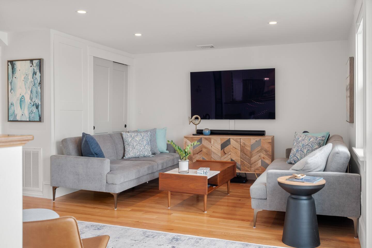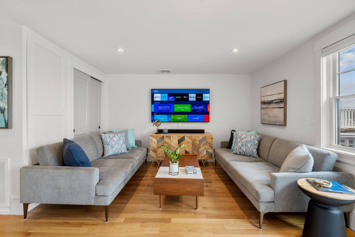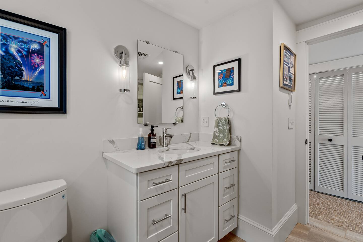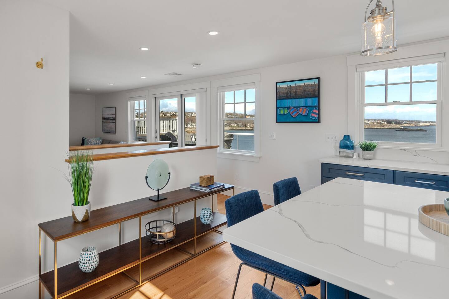 ☀ Waterfront deck with lots of outdoor seating ☀ 1 bedroom, 2 full size sleeper sofas ☀ Renovated modern bathroom with spacious tiled shower ☀ Modern and well-equipped kitchen with large island that seats 6 ☀Central AC for hot summer days ☀ Hi-Speed WiFi, 2 large Smart TVs, and Sonos speaker for entertainment ☀ Washer/dryer in unit ☀ Rare California King Bed ☀ Directly next to the famous Shalin-liu theater and steps away from scenic downtown Rockport