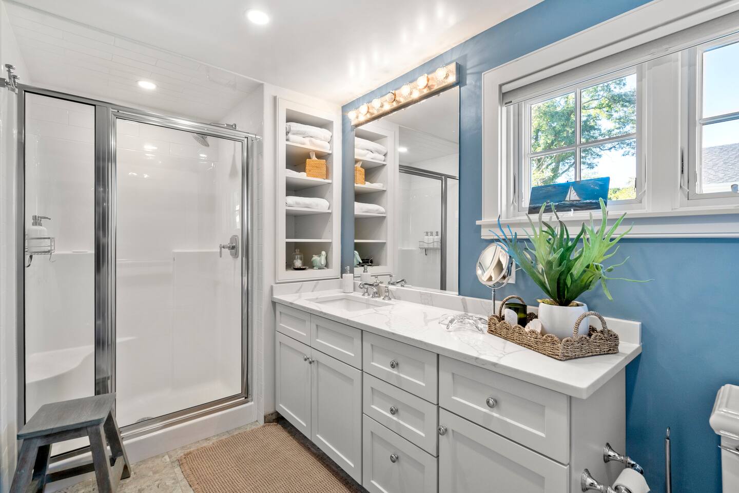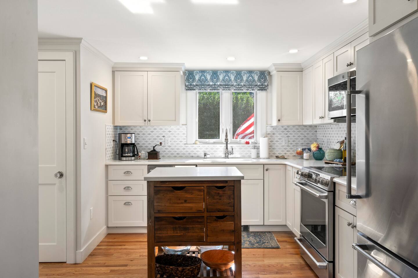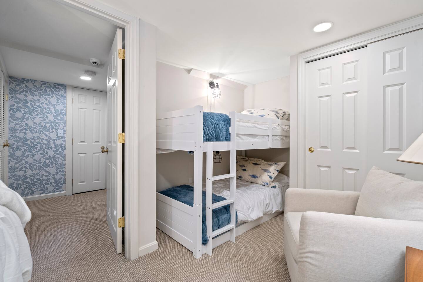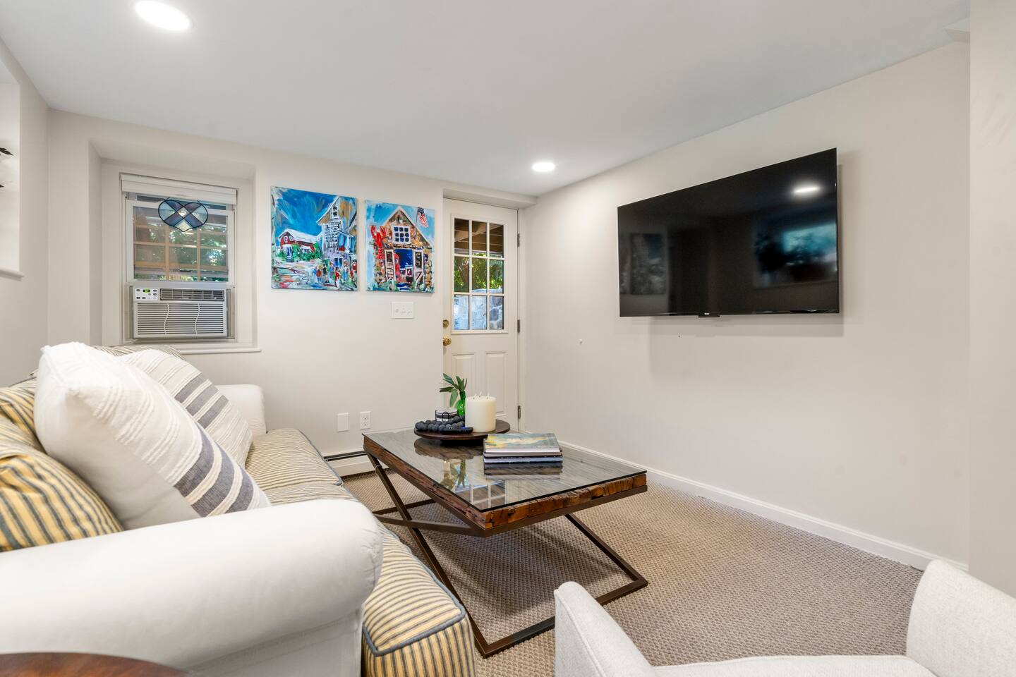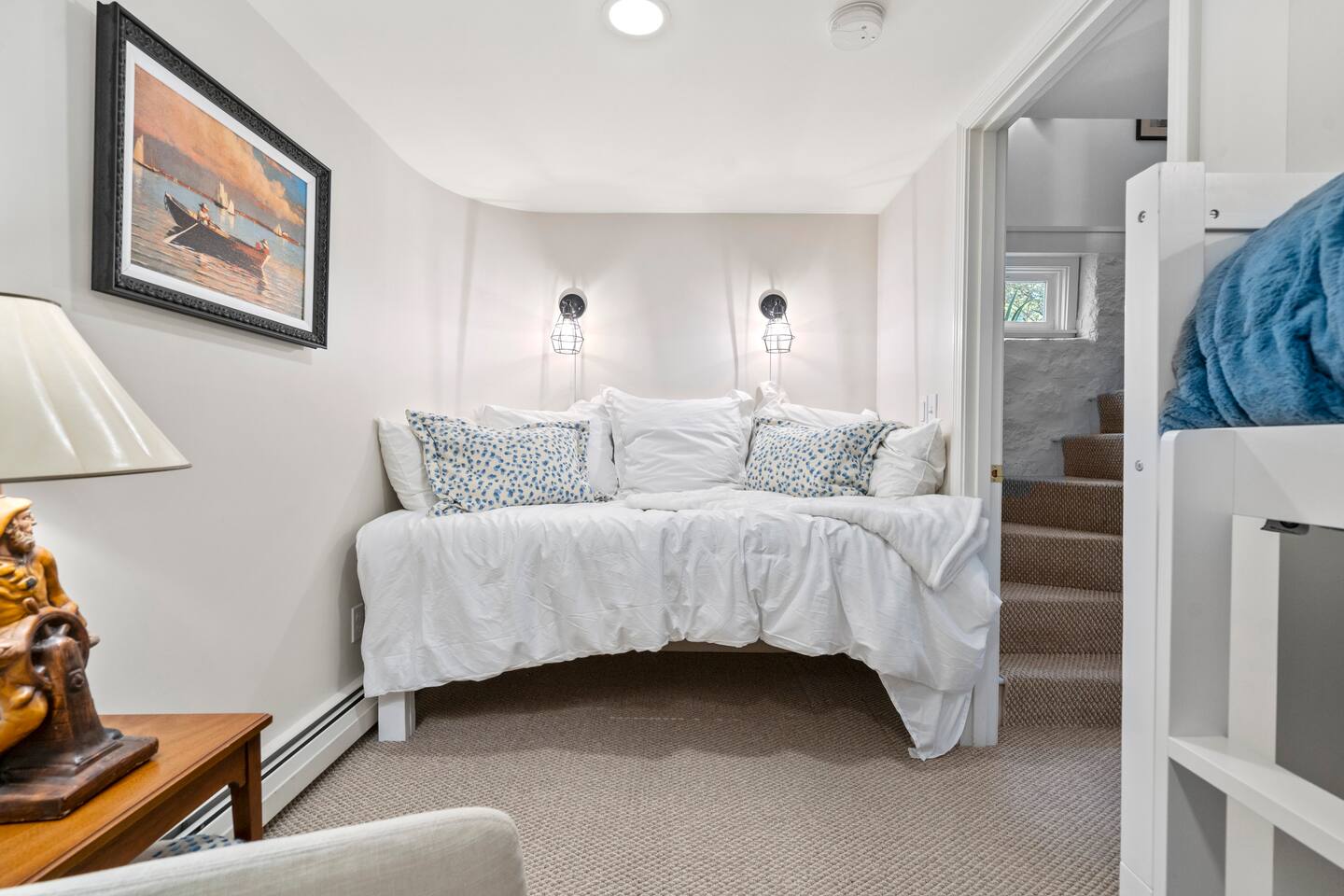 Set amidst a quiet oasis off the beaten path this exquisite shingled cape residence epitomizes refined elegance while effortlessly attending to the desired needs of modern day living. Enjoy a curated backyard oasis - outdoor shower, grill, firepit, covered deck seating - all this within walking distance to quintessential downtown Rockport and beautiful Bearskin Neck. 5 Min Walk to Old Garden Beach 30 Min Drive to Salem Experience Garden Beach Getaway With Us & Learn More Below! ☆☆ FIRST IMPRESSION ☆☆ As you enter the picturesque town of Rockport you'll pull onto a quiet gravel side street and see the quintessential cedar shingled home and garage. Pull up the the house and enjoy 3 driveway parking spots (a luxury in downtown Rockport!). As you enter the home, the main level is filled with natural light. The gourmet kitchen boasts high-end appliances and is fully equipped with all the utensils and cookware you need to feel at home. Experience the perfect entertaining space as the kitchen gracefully flows into the dining room with custom built china cabinets. The spacious living room showcases a gas fireplace, Smart TV and two sitting areas. No shortage of inside spaces to gather and enjoy the luxurious central AC on a hot day! ☆☆ SECOND FLOOR ☆☆ Retreat to the second floor, and you'll find the primary bedroom with comfortable King-sized bed. A second bedroom is fitted with a queen sized bed. The full bathroom on this level features a walk in shower, plenty of space and light at the vanity to get ready and a convenient washer/dryer. The final room on this floor is a flexible space that can serve as an office by day and sleep an additional guest at night! ☆☆ LOWER LEVEL ☆☆ You'll have plenty of space on the first two levels but the lower level is what makes this an ideal space for families. The level has a bedroom with built in bunk beds and a single bed to comfortably sleep 3 people, a full bathroom, and a living room with pull out sofa with smart TV! Walk right out to an additional patio with outside seating. Lots of possibilities with this setup! ☆☆ OUTSIDE ☆☆ The main level leads to a magnificent covered deck that overlooks the sprawling lawn with its granite walls and bluestone patios. Enjoy cooking on the built in grill or evenings by the firepit. Come back from a day at Old Garden Beach just down the road and rinse off in your own outdoor shower. Want for nothing on this Rockport vacation! ★☆ Book Today & Let Us Take Care Of You at the Garden Beach Getaway! ☆★