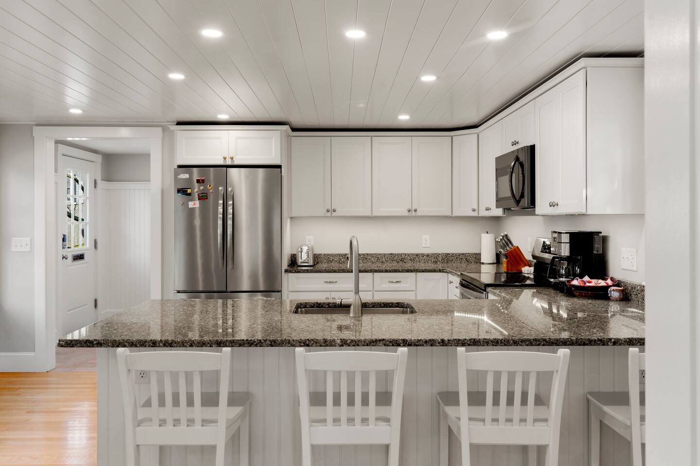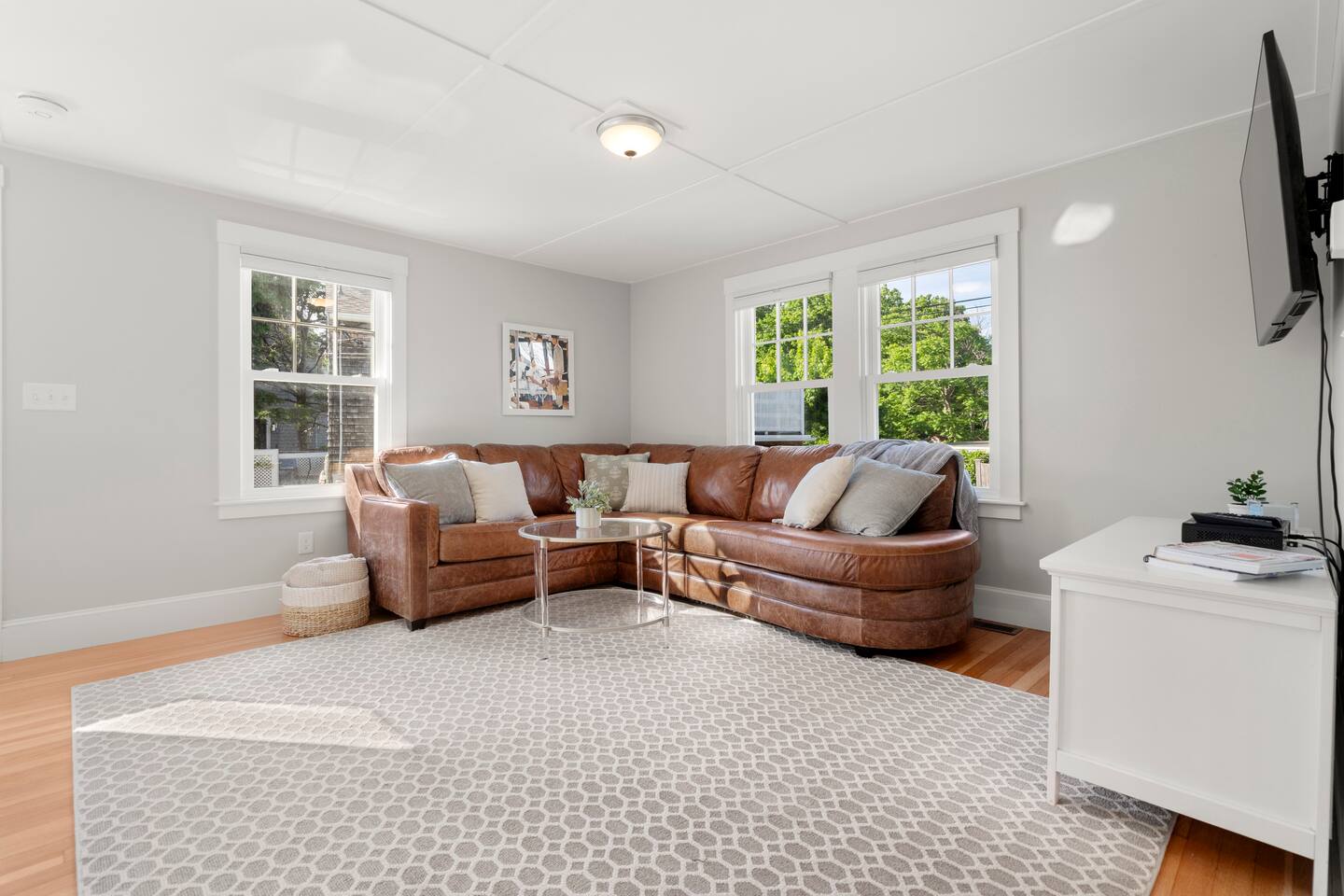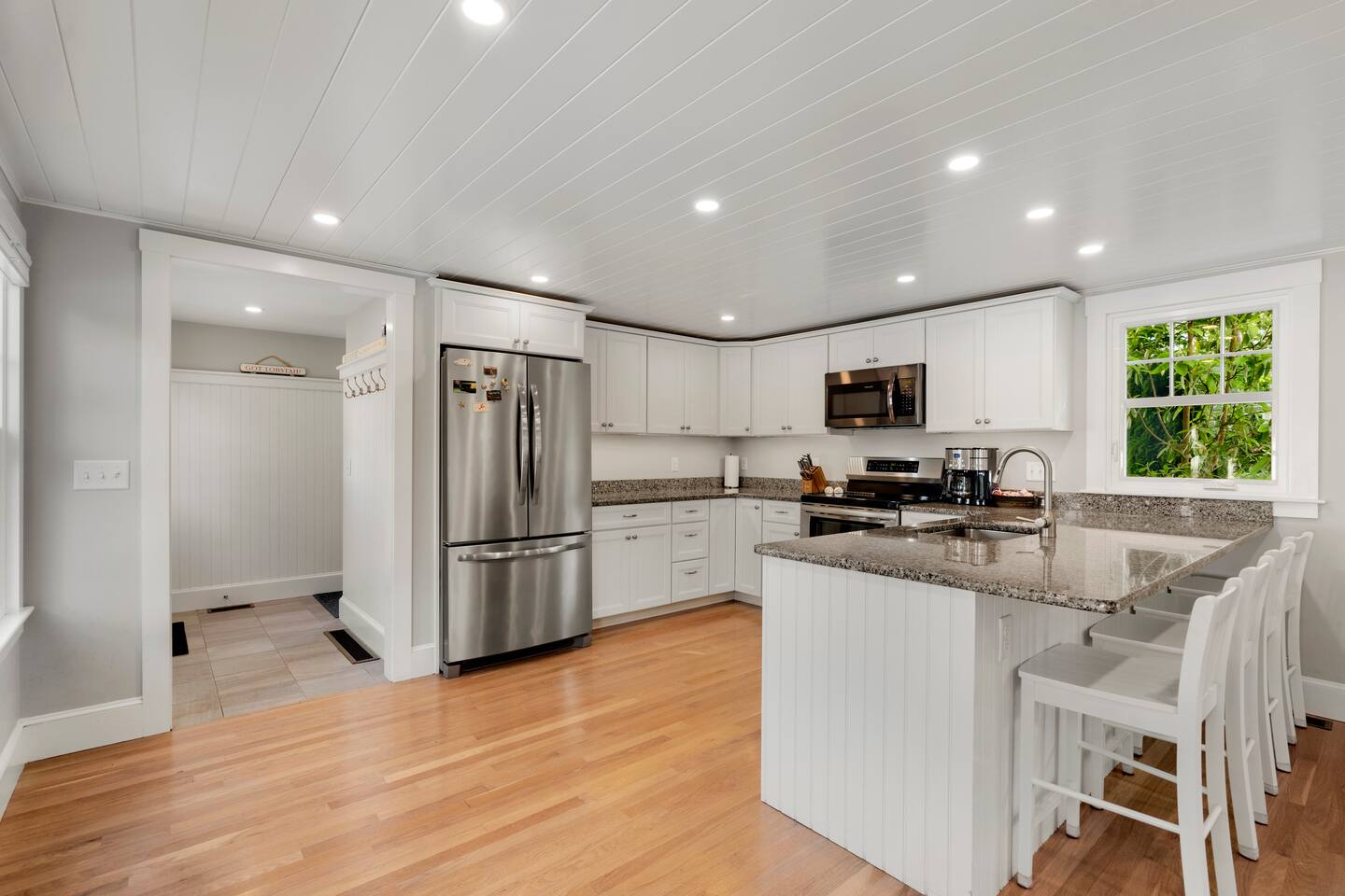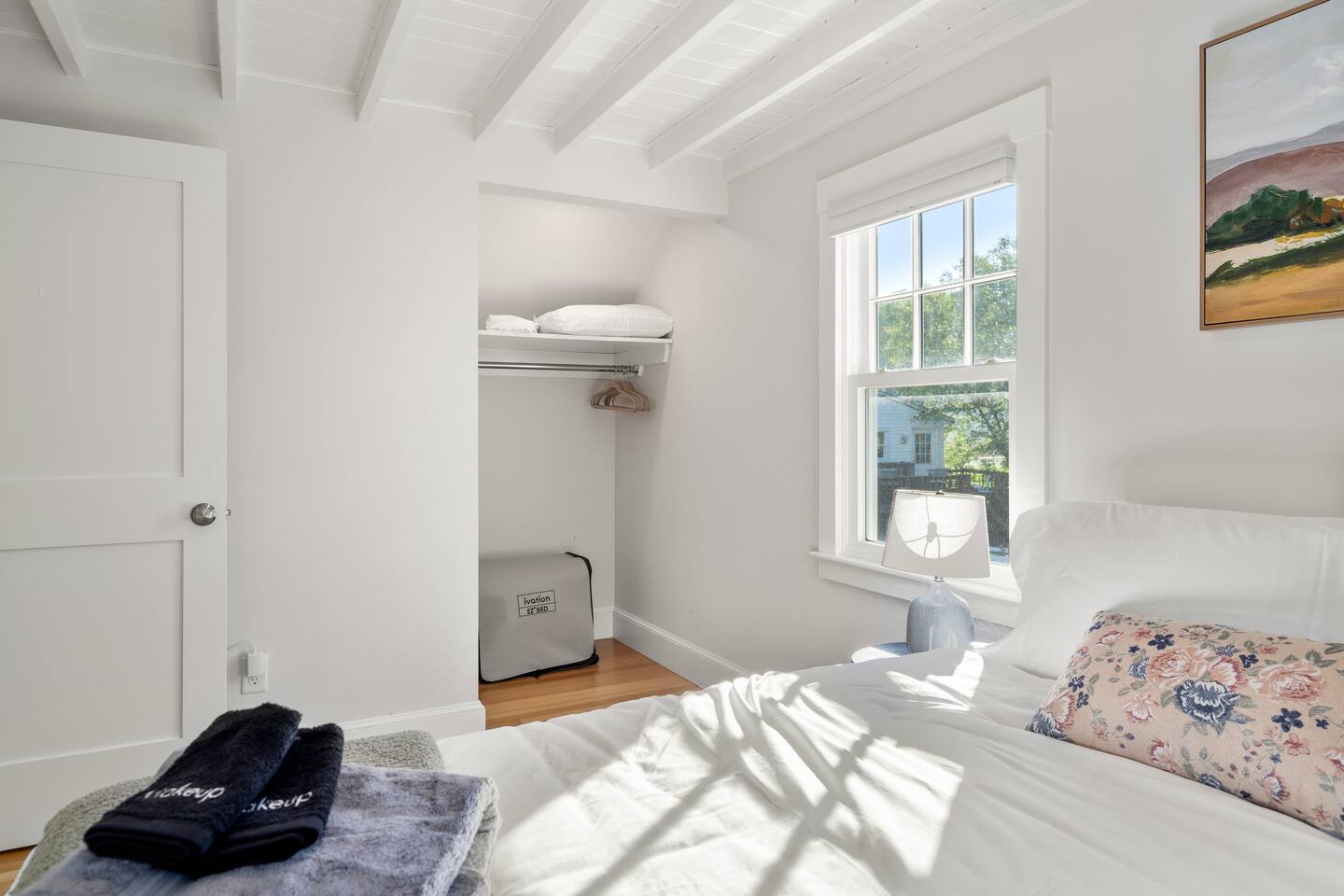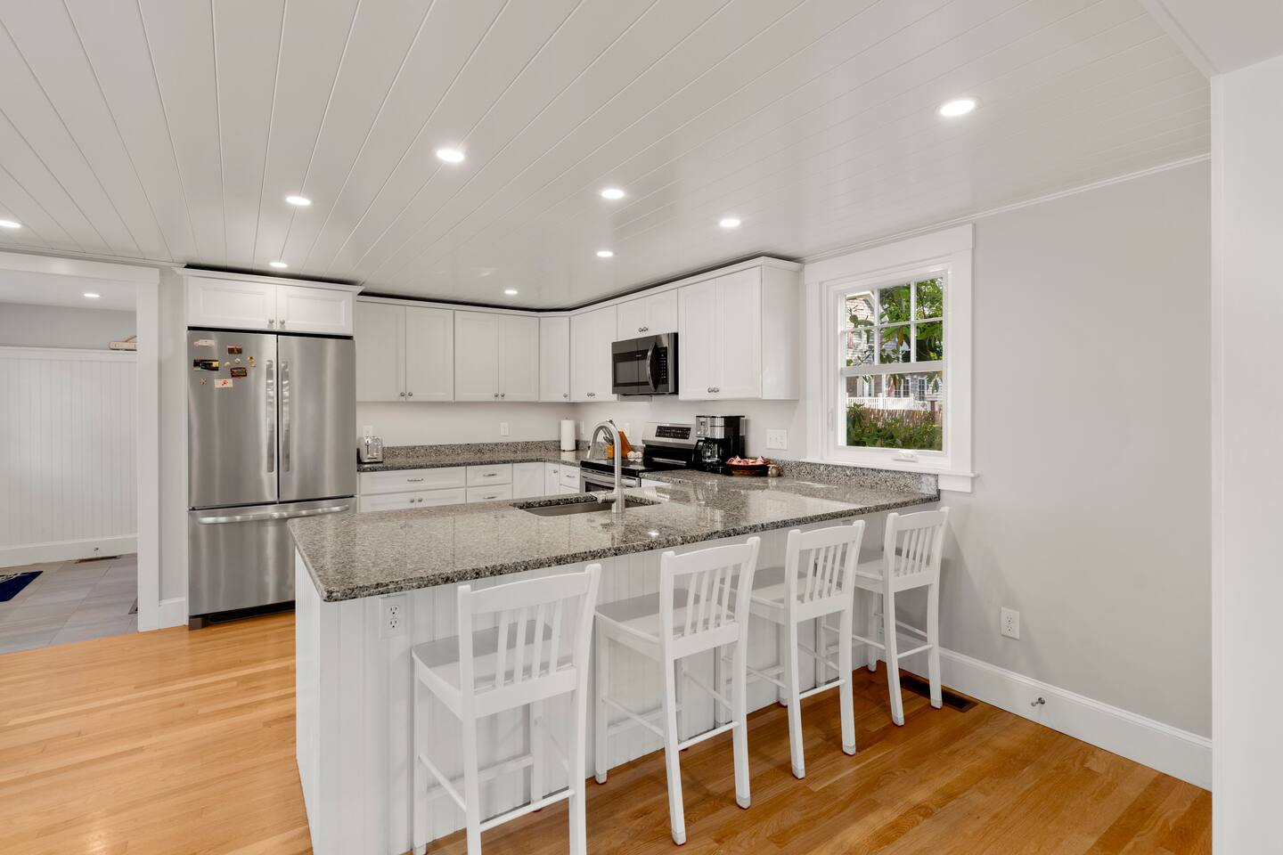 This charming seaside cottage is newly renovated with lots of modern conveniences and plenty of original character. You're only steps away from the center of historic and picturesque downtown Rockport. ☆☆ FIRST FLOOR ☆☆ Pull up the the house and enjoy your reserved parking (a luxury in downtown Rockport!). The first floor of the home is an open concept space with living room, dining area, and kitchen all connected. The cozy kitchen is fully equipped with all the appliances, utensils and cookware you need to feel at home. There's room for 4 at the bar or just walk a few steps to take your meals to the beach! The living room has a comfortable sectional sofa and is kitted with a smart TV, allowing full access to your favorite streaming services. This space is also stocked with games and toys making it the perfect place to unwind at the end of a long day of exploring. ☆☆ SECOND FLOOR ☆☆ Climb up the stairs and you'll find two generous sized bedrooms to accommodate 4 guests. The primary bedroom is fitted with a King-size bed and walk in closet (perfect for a pack and play!). There's even a convenient washer and dryer tucked in there perfect for drying off wet suits after a day at the beach! The second bedroom has a queen size bed and plenty of room to unpack in the closet. You'll also find a twin sized air mattress here that can sleep an additional adult or kid in the bedroom or living room! The second floor also has the renovated full bathroom with large walk in shower. Outside the house you'll find a bin stocked with beach chairs and toys. All this just steps away from all the sights and attractions of Rockport! ★☆ Book Today & Let Us Take Care Of You at the Back Beach Bungalow! ☆★