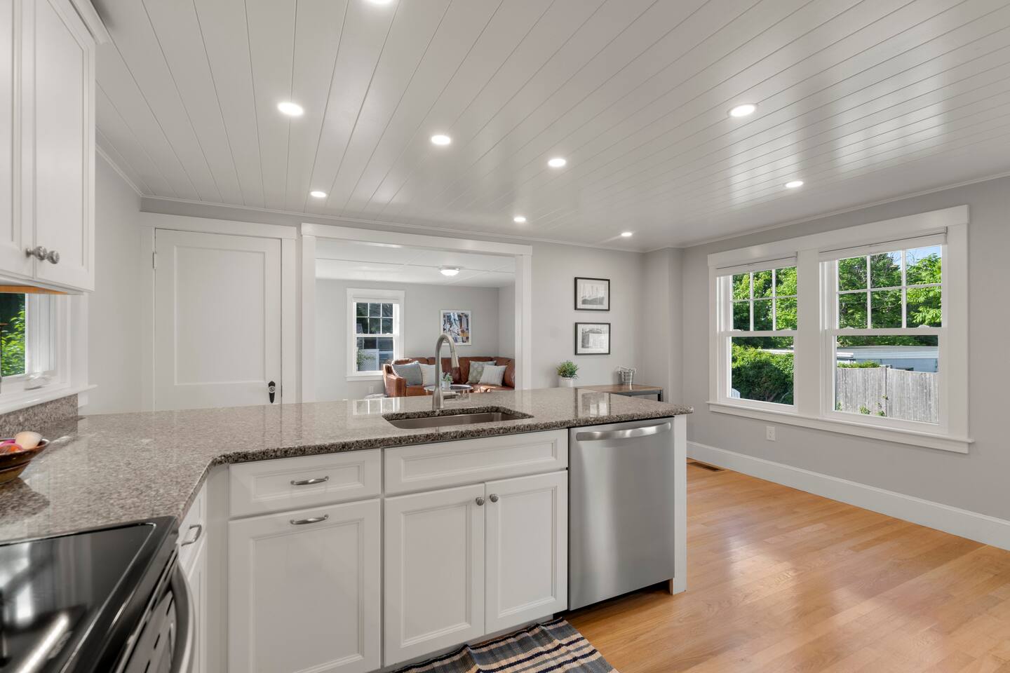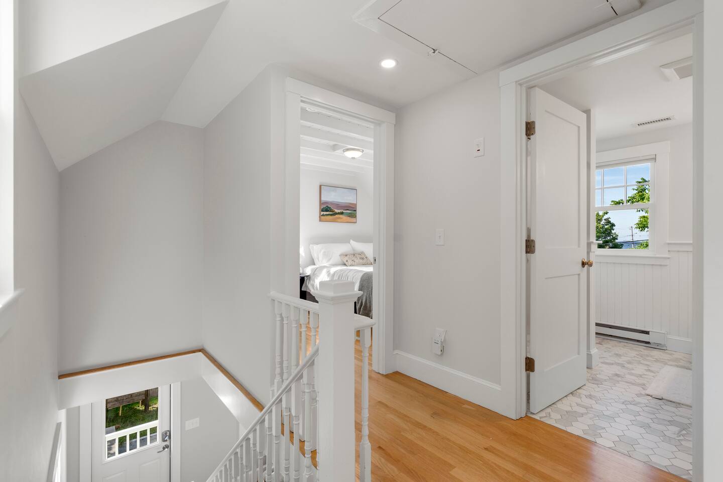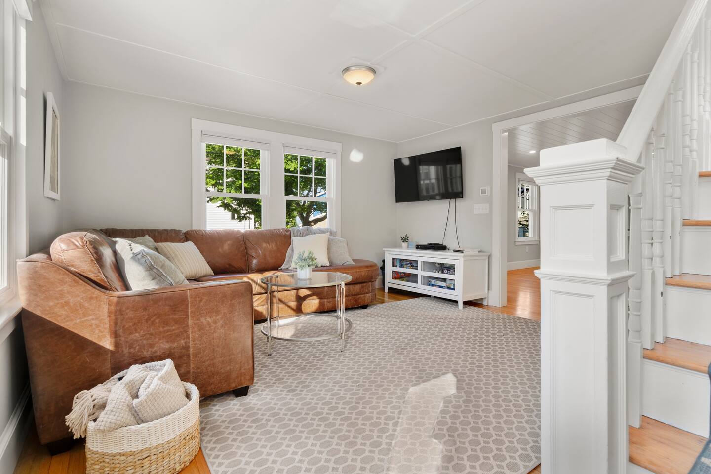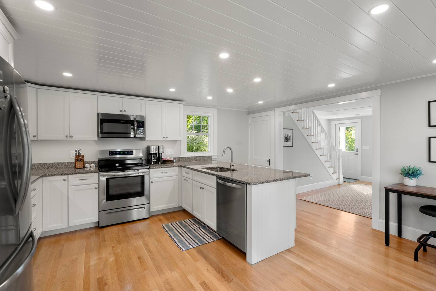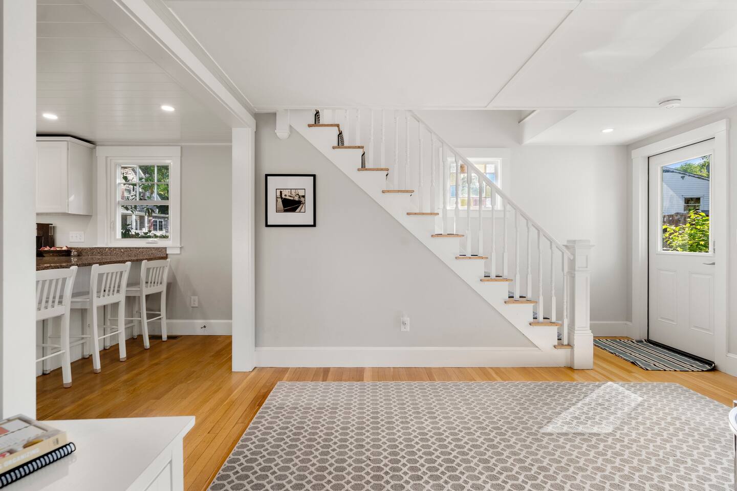 This charming seaside cottage is newly renovated with lots of modern conveniences and plenty of original character. You're only steps away from the center of historic and picturesque downtown Rockport. ☆☆ FIRST FLOOR ☆☆ Pull up the the house and enjoy your reserved parking (a luxury in downtown Rockport!). The first floor of the home is an open concept space with living room, dining area, and kitchen all connected. The cozy kitchen is fully equipped with all the appliances, utensils and cookware you need to feel at home. There's room for 4 at the bar or just walk a few steps to take your meals to the beach! The living room has a comfortable sectional sofa and is kitted with a smart TV, allowing full access to your favorite streaming services. This space is also stocked with games and toys making it the perfect place to unwind at the end of a long day of exploring. ☆☆ SECOND FLOOR ☆☆ Climb up the stairs and you'll find two generous sized bedrooms to accommodate 4 guests. The primary bedroom is fitted with a King-size bed and walk in closet (perfect for a pack and play!). There's even a convenient washer and dryer tucked in there perfect for drying off wet suits after a day at the beach! The second bedroom has a queen size bed and plenty of room to unpack in the closet. You'll also find a twin sized air mattress here that can sleep an additional adult or kid in the bedroom or living room! The second floor also has the renovated full bathroom with large walk in shower. Outside the house you'll find a bin stocked with beach chairs and toys. All this just steps away from all the sights and attractions of Rockport! ★☆ Book Today & Let Us Take Care Of You at the Back Beach Bungalow! ☆★