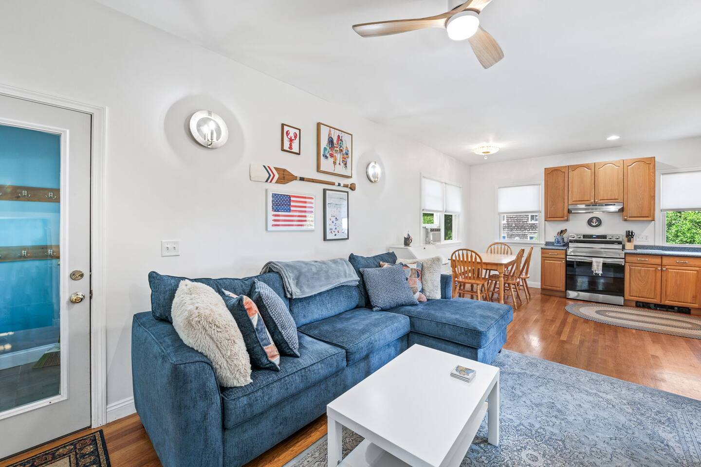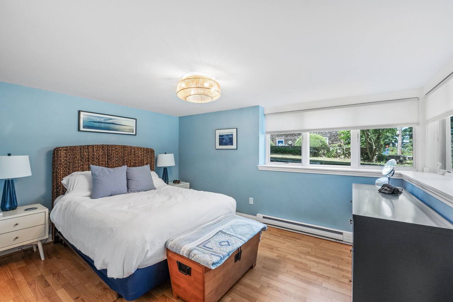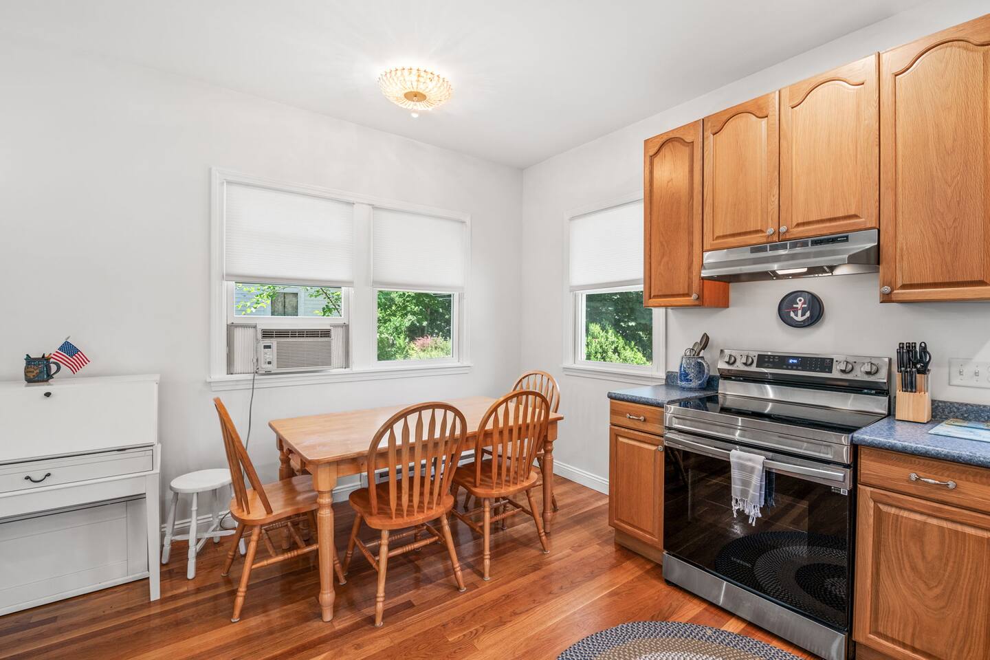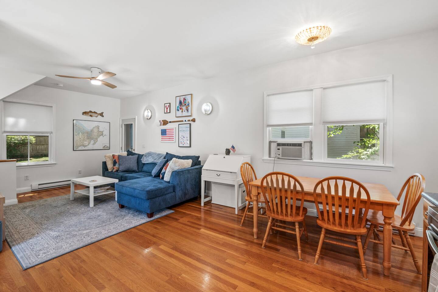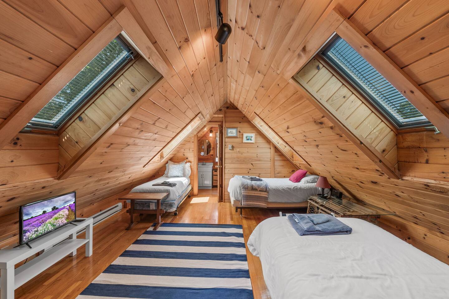 The Space: ☆☆FIRST FLOOR☆☆ Step into this seaside home and be greeted by an open concept kitchen and living space. Here you will find a fully equipped kitchen, dining space for 4, and a living room area with a Smart TV. A dedicated workspace can also be found in this area for your "work-cation". The living room also has a pullout sofa for additional guests. ☆☆SECOND FLOOR☆☆ Climb up the stairs to the second floor, which has a "cabiny" feel featuring skylights and 3 twin beds. You can also find a full bathroom on this floor. ☆☆LOWER LEVEL☆☆ In the basement of this home, you can find the primary suite, which has a queen bed and its own TV. Also on this level is a full bathroom with a large tub and the washer/dryer. ☆☆OUTDOOR SPACE☆☆ The fenced in backyard at this property is very spacious and perfect for the little ones to run around. Outdoor furniture is also included if you want to enjoy a meal in the seaside air. Book today and let us take care of you at the Lanesville home!